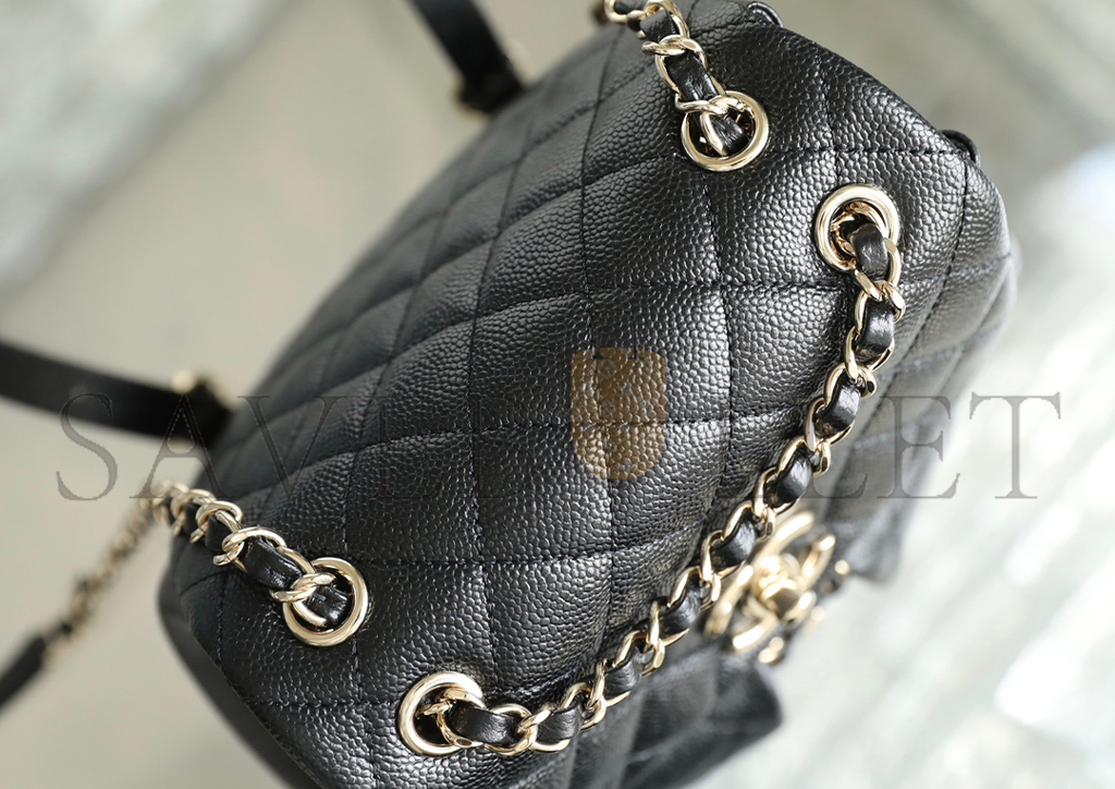• CHANEL MASTER SHINY CAVIAR QUILTED MEDIUM DUMA POCKETS DRAWSTRING BACKPACK BLACK (20.5*20*11.5cm)