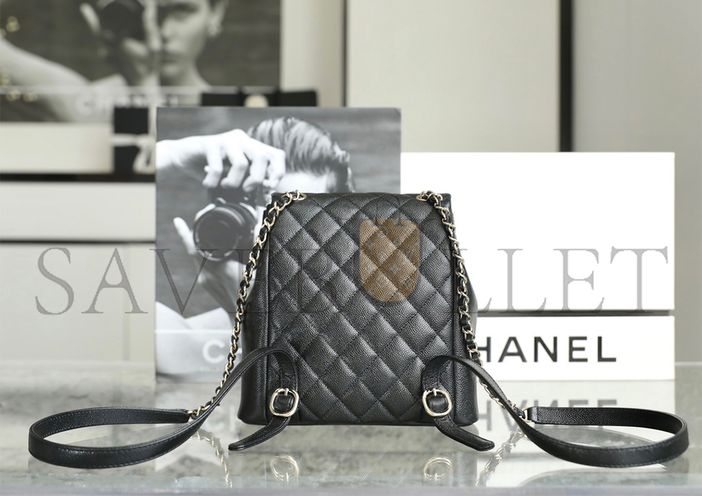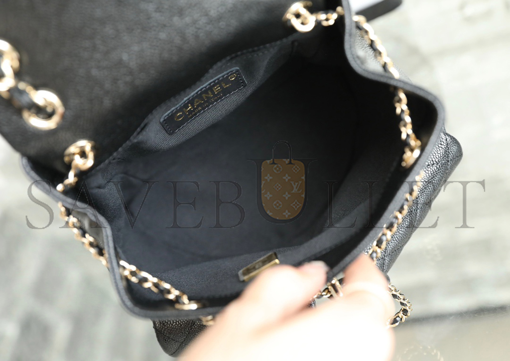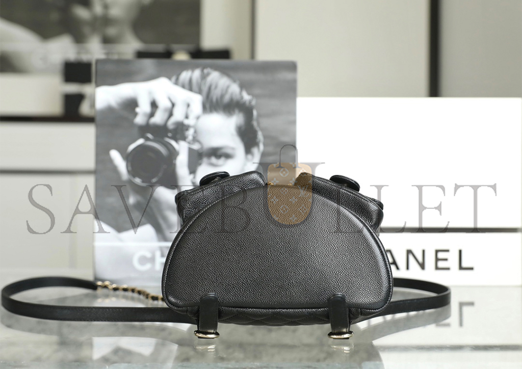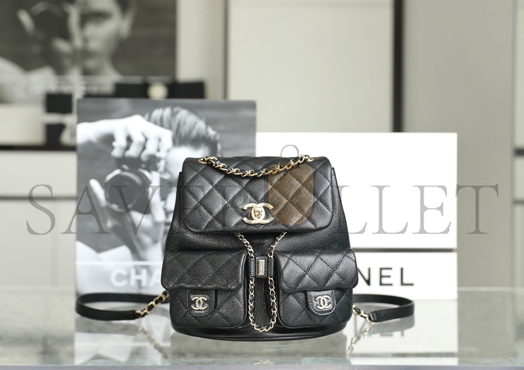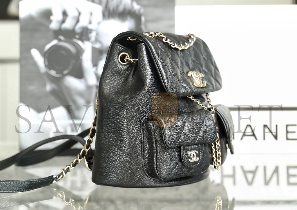 CHANEL MASTER SHINY CAVIAR QUILTED MEDIUM DUMA POCKETS DRAWSTRING BACKPACK BLACK (20.5*20*11.5cm)