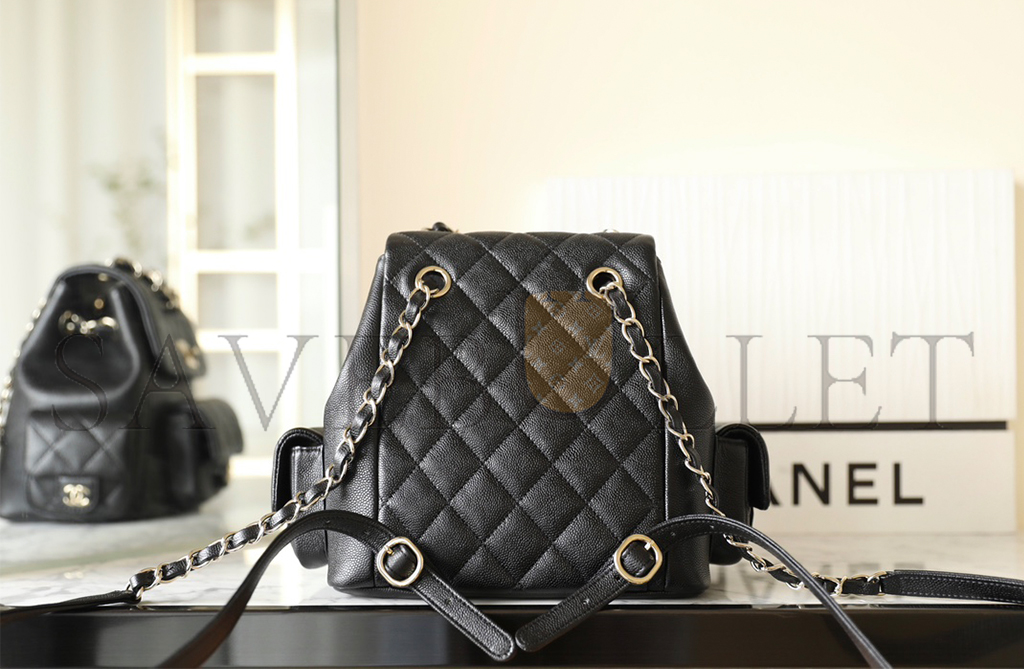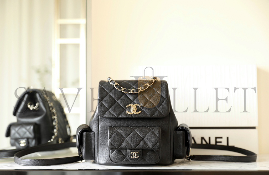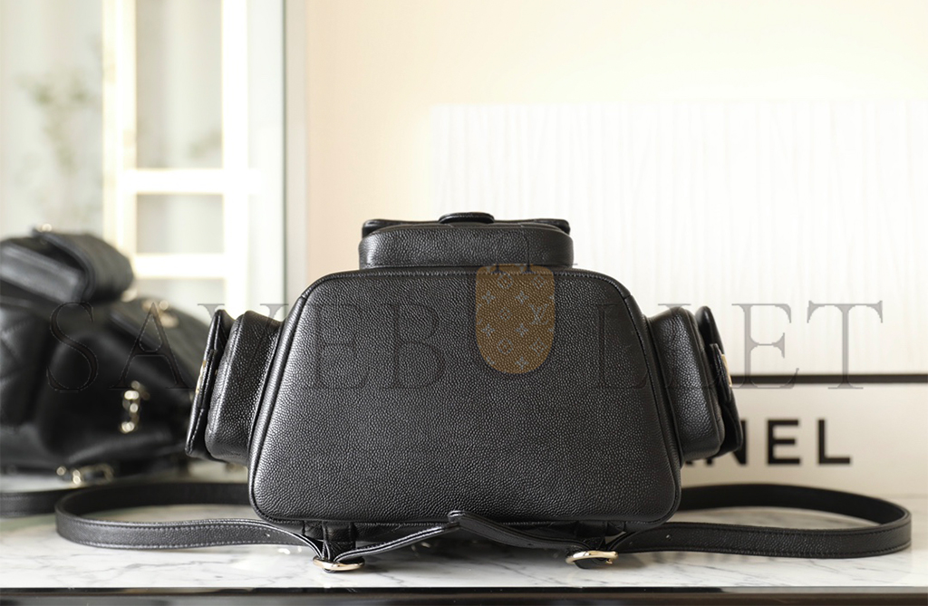• CHANEL MASTER SHINY CAVIAR QUILTED SMALL POCKETS DRAWSTRING BACKPACK BLACK (21.5*19.5*12cm)