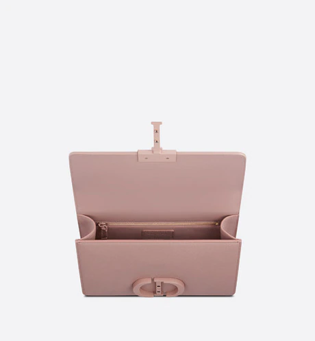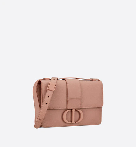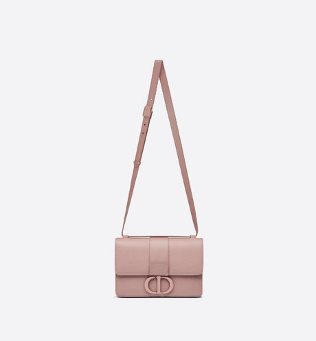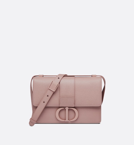The 30 Montaigne line, inspired by the hallmark address, offers essential pieces that embody the House's iconic codes. The handbag is crafted in blush ultramatte grained calfskin for an elegant and modern design. The flap has a tonal metal 'CD' clasp, inspired by the seal of a Christian Dior perfume bottle. Other details, like the embossed '30 MONTAIGNE' signature at the back highlight the streamlined design. The style has an adjustable leather shoulder strap and can be carried by hand, worn over the shoulder or crossbody.