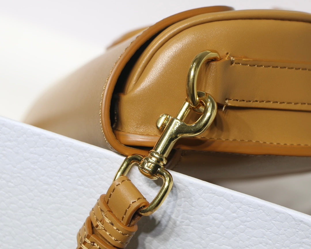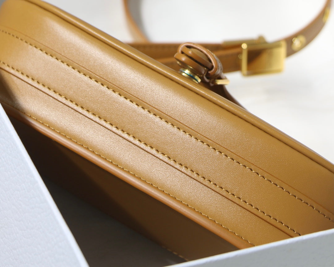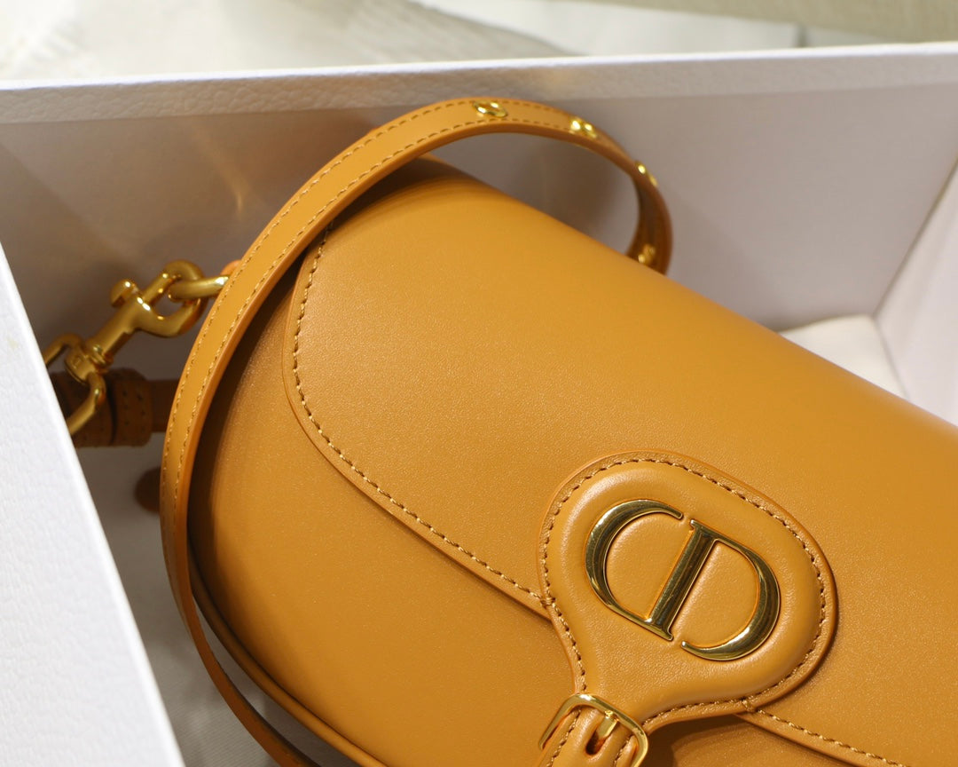 New this season, the Dior Bobby East-West bag modernizes the allure of the Hobo silhouette through elegant lines and harmonious proportions. The amber box calfskin style features a suede interior for added suppleness as well as antique gold-finish metal hardware. Adorned with a removable, adjustable sliding shoulder strap with a signature military-inspired buckle, the medium Dior Bobby bag can be carried by hand, worn over the shoulder by day or crossbody for a sportier look.