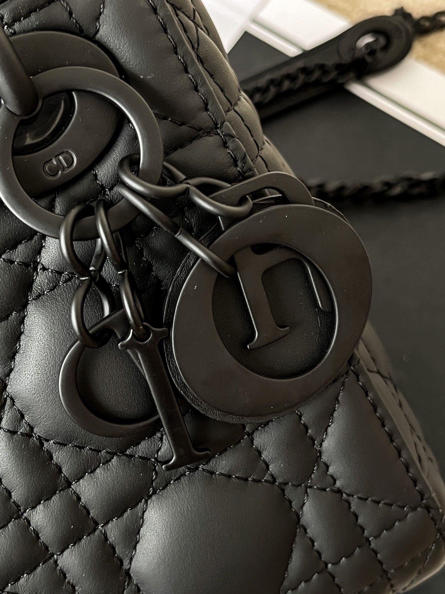 The season's Lady Dior bag embodies Dior's vision of elegance and beauty. The refined creation is timeless yet still very relevant. Crafted in blush lambskin with Cannage stitching, its quilted texture instantly stands out, while the pale gold-finish metal 'D.I.O.R.' charms further embellish the silhouette. The medium style features a thin, removable leather shoulder strap and can be carried by hand, worn over the shoulder or crossbody.