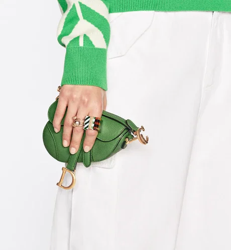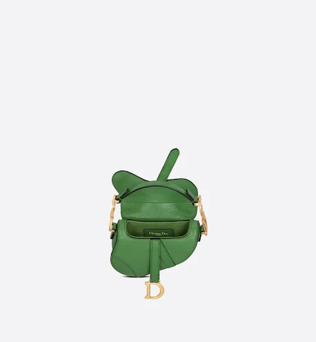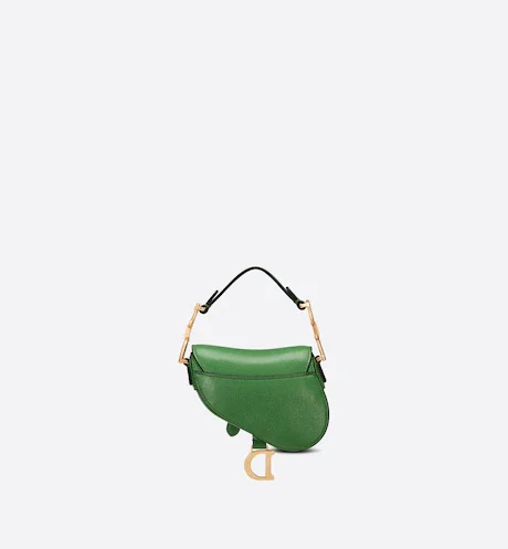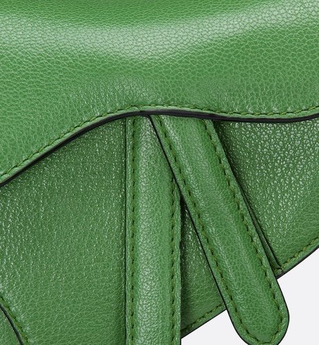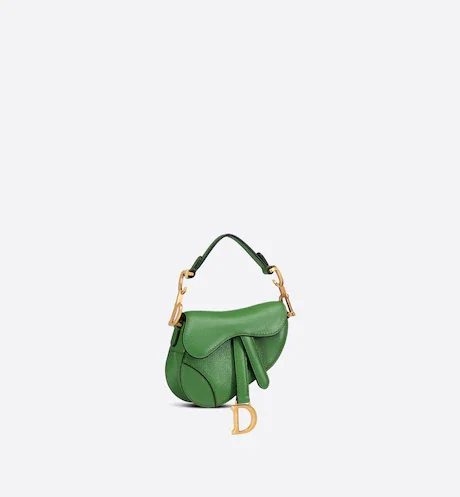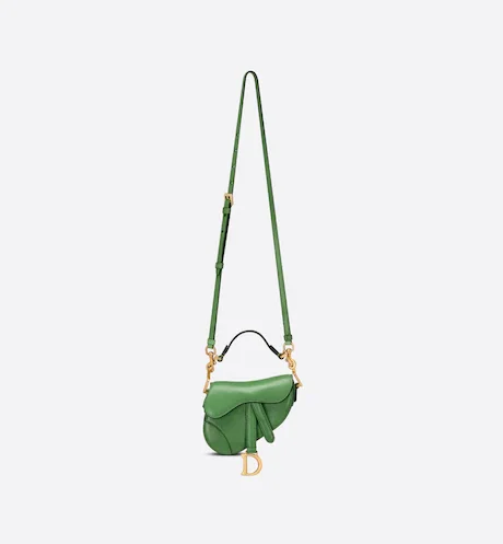 Maria Grazia Chiuri brings a fresh update to the iconic Saddle bag with a micro version. Crafted in bright green goatskin, its legendary design features a Saddle flap with an antique gold-finish metal 'D' stirrup and a 'CD' signature on each side of the strap. New this season, the bag features an adjustable and removable shoulder strap allowing it to be worn crossbody or over the shoulder in addition to being carried by hand.