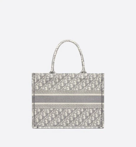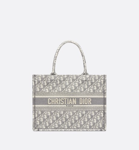 The Dior Book Tote is an original creation introduced by Dior's Creative Director, Maria Grazia Chiuri, and has become a staple of the Dior aesthetic. Designed to hold all the daily essentials, it is fully embroidered with the gray Dior Oblique motif and adorned with a 'CHRISTIAN DIOR' signature on the front. The small tote exemplifies the House's signature savoir-faire and may be carried by hand or worn over the shoulder.