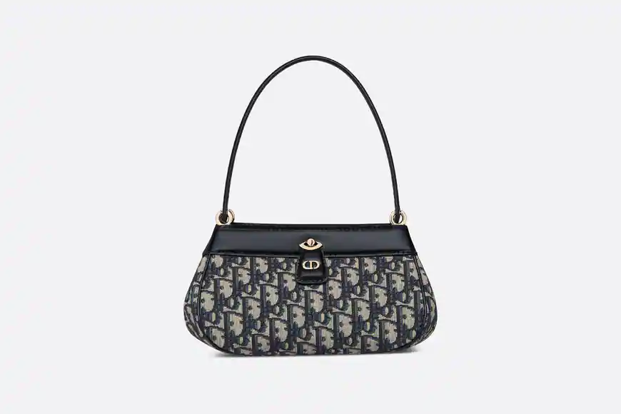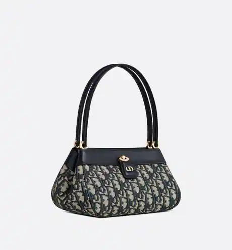 A pillar of the Spring-Summer 2023 fashion show, this season's new Dior Key bag draws inspiration from House archives to create a style with retro charm. Offered in blue Dior Oblique jacquard, it is distinguished by a CD twist clasp inspired by an exclusive lock and revealing a compartment to accommodate all the essentials. Featuring thin leather handles, the refined small bag can be worn over the shoulder or carried by hand to accompany all of this season's attire.