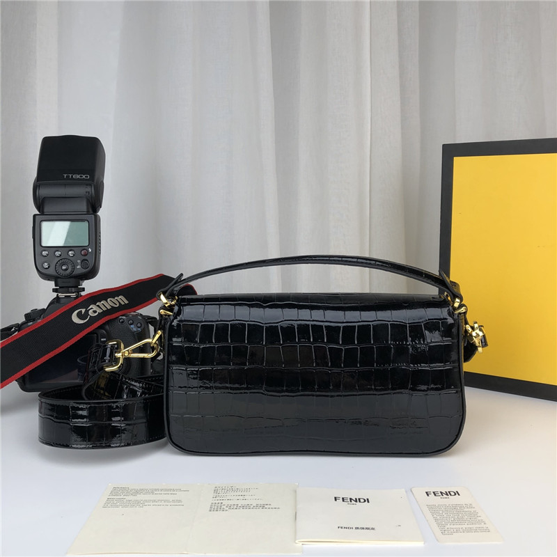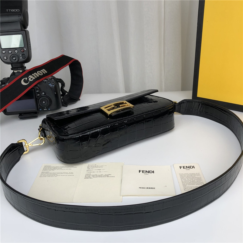 fendi crocodile baguette black