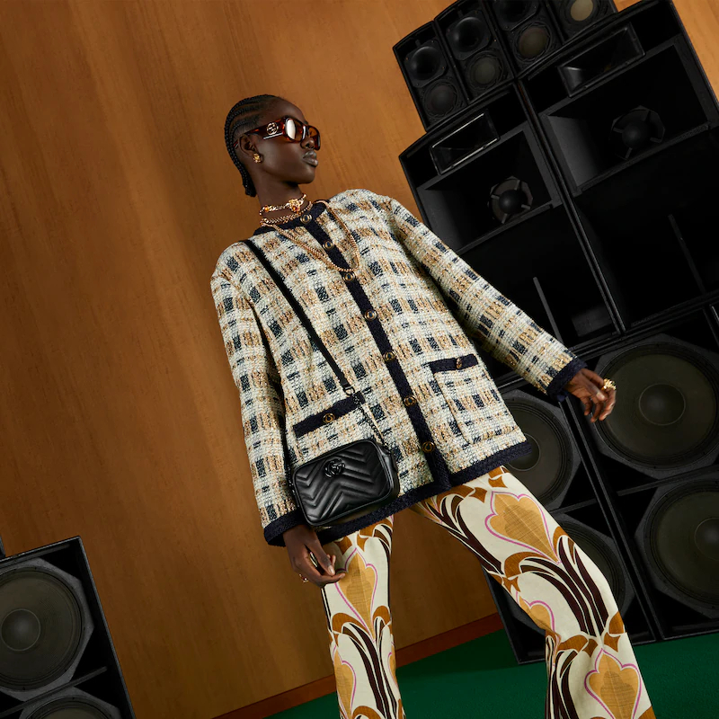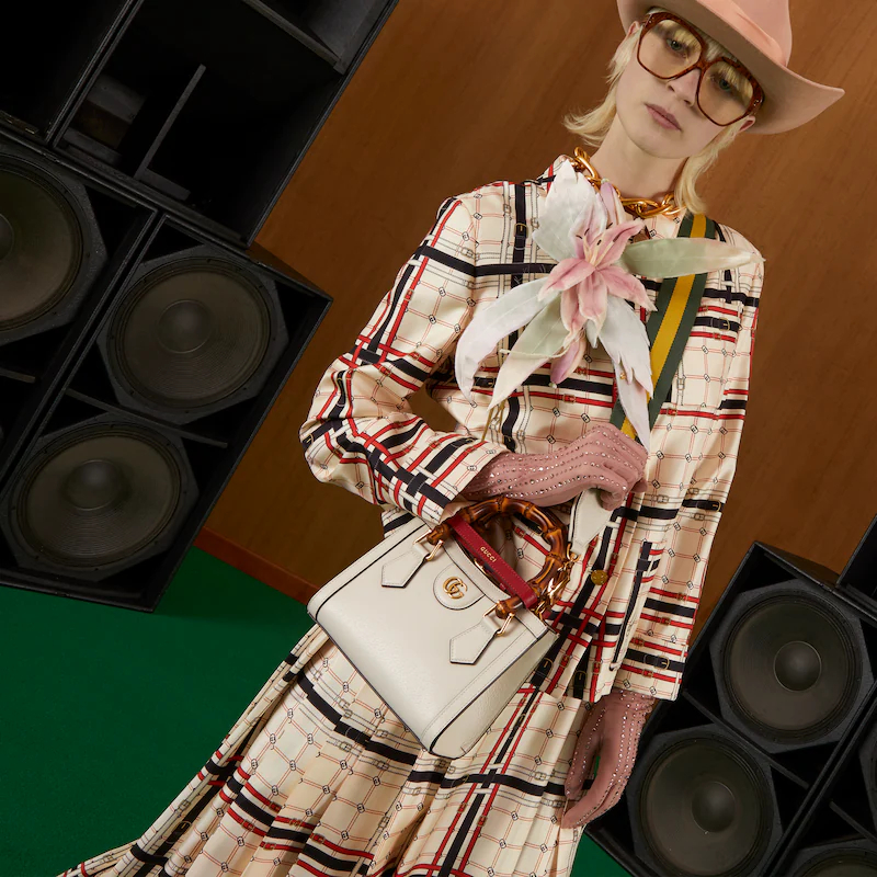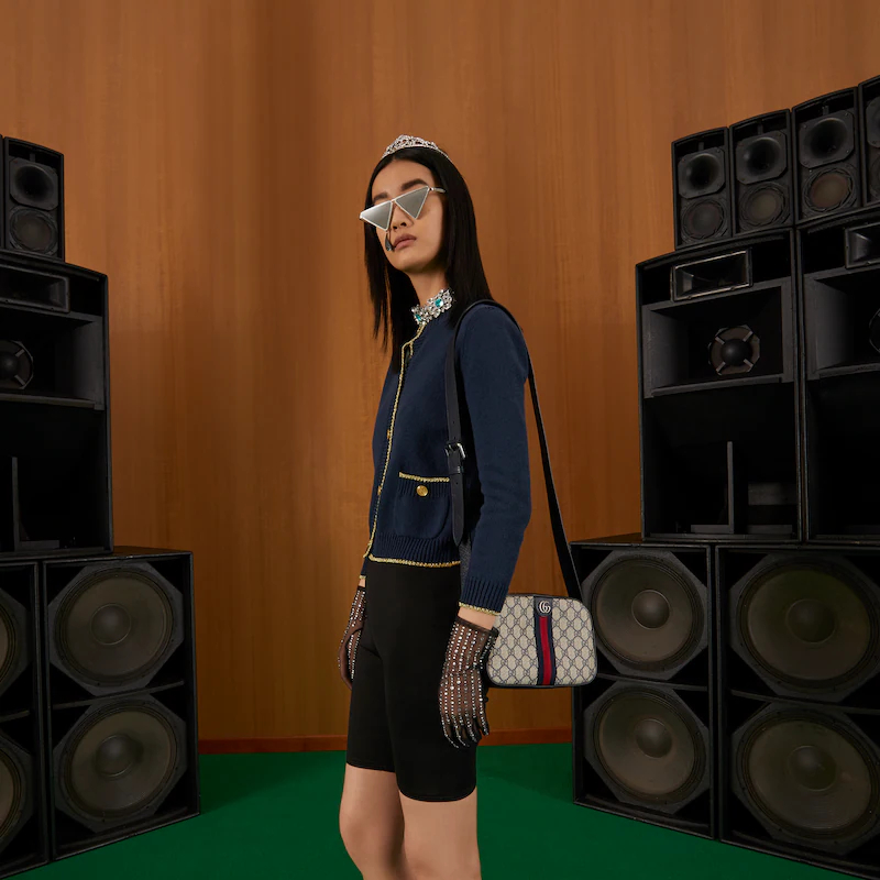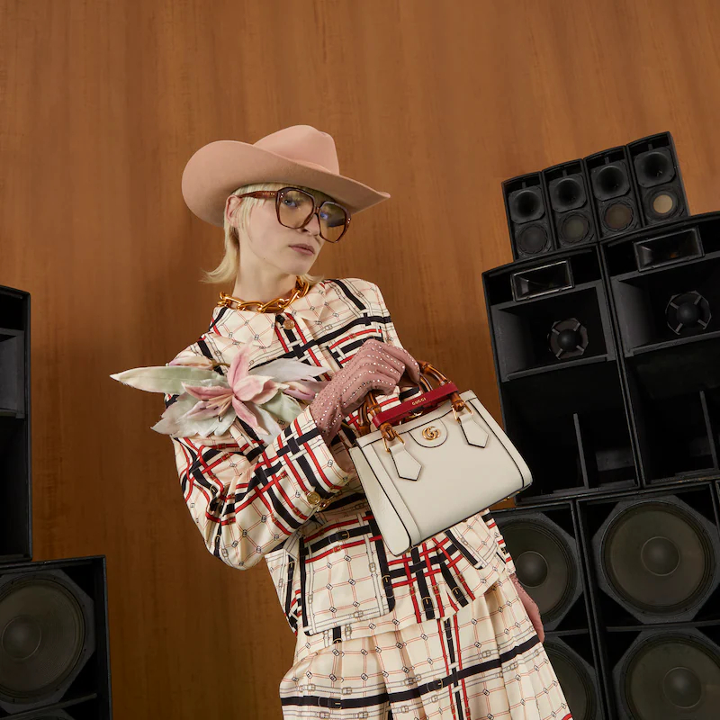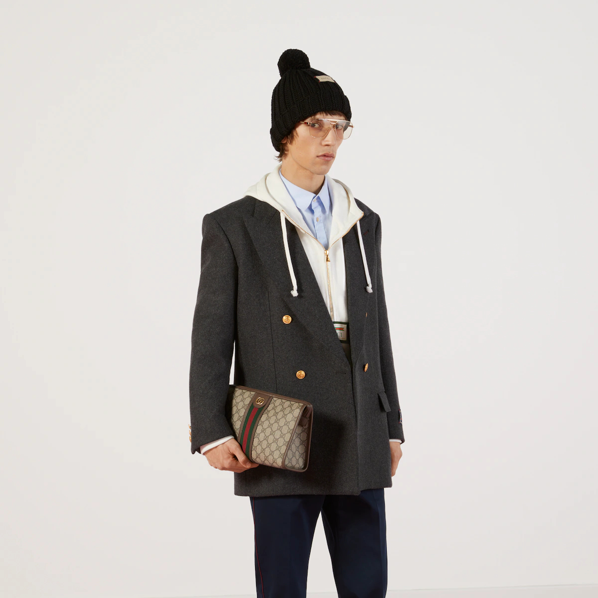 Gucci Supreme Monogram Emblem Small Tote Bag Beige Dark Brown