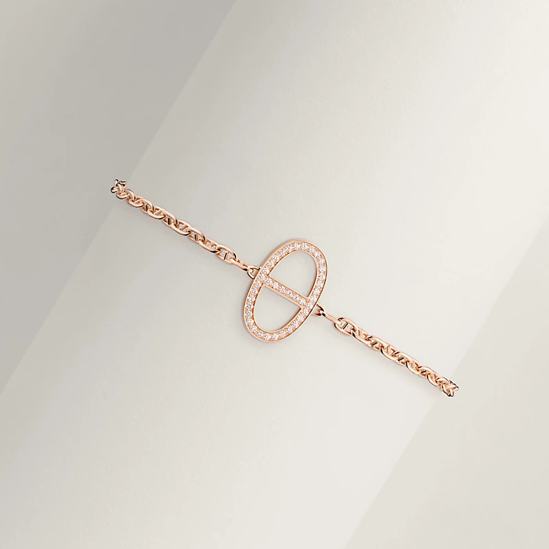 Chaine d'ancre Contour jewelry is embellished with gold and diamond elements, outlining the iconic chain link design.