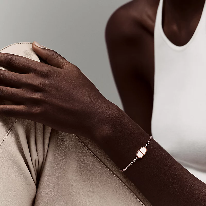 Rose gold and white ceramic buckle bracelet.