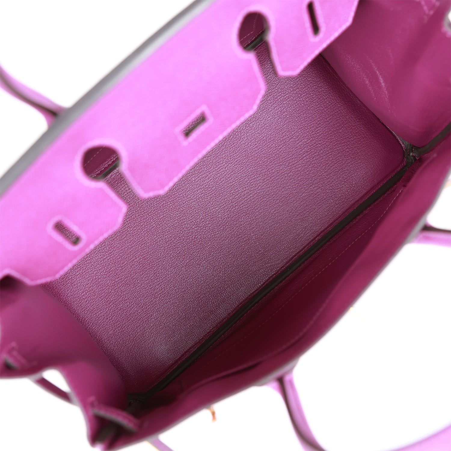 This Birkin is in Anemone epsom leather with gold hardware and has tonal stitching,front flap, two straps with center toggle closure, clochette with lock and two keys, and double rolled handles.