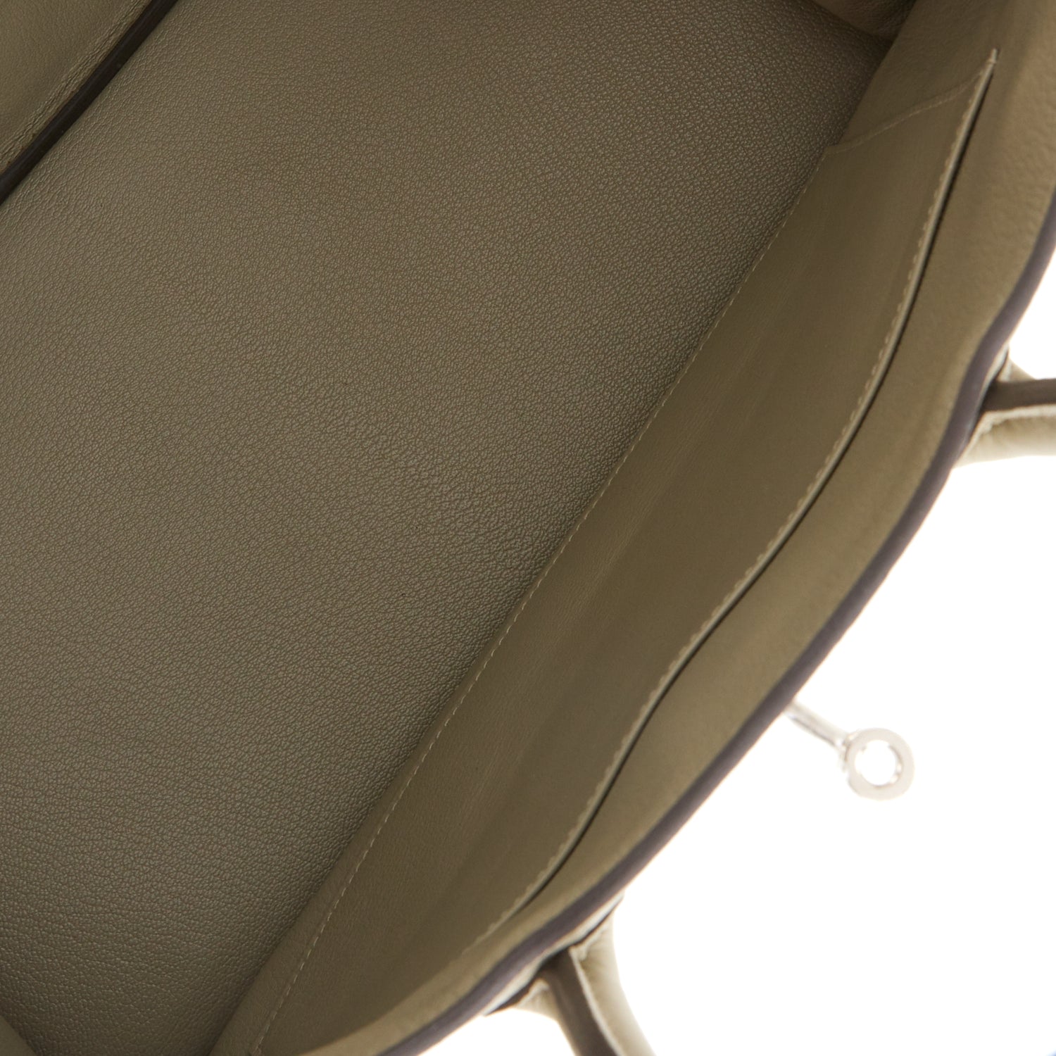 The interior is lined with Sage chevre and has one zip pocket with an Hermès engraved zipper pull and an open pocket on the opposite side.
