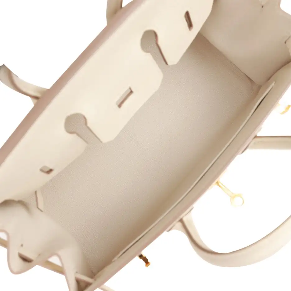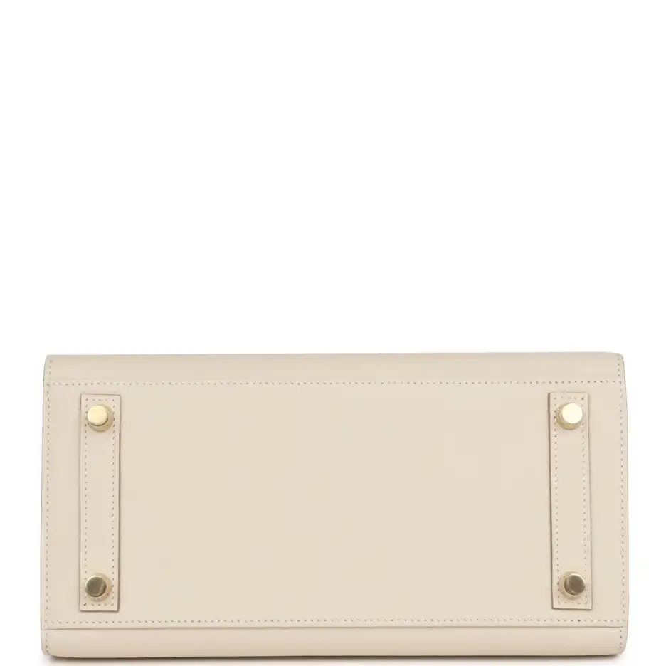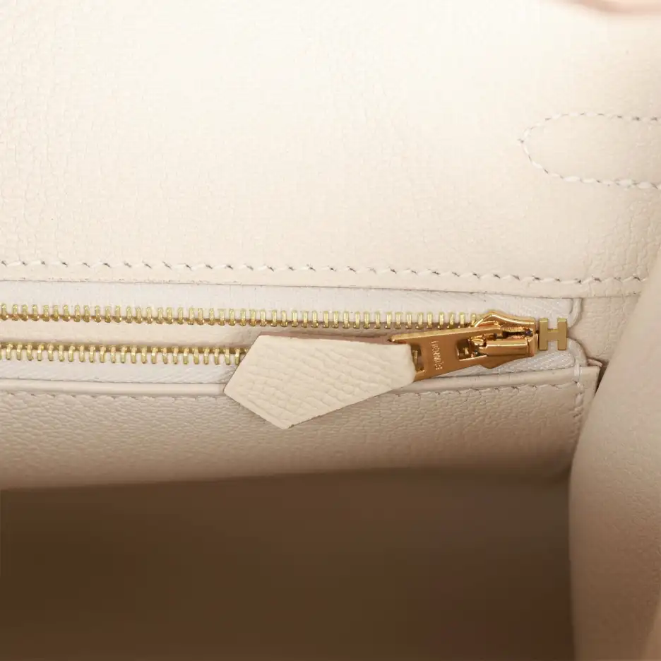 This Sellier Birkin is in Craie epsom leather with gold hardware and has tonal stitching,front flap, two straps with center toggle closure, clochette with lock and two keys, and double rolled handles.