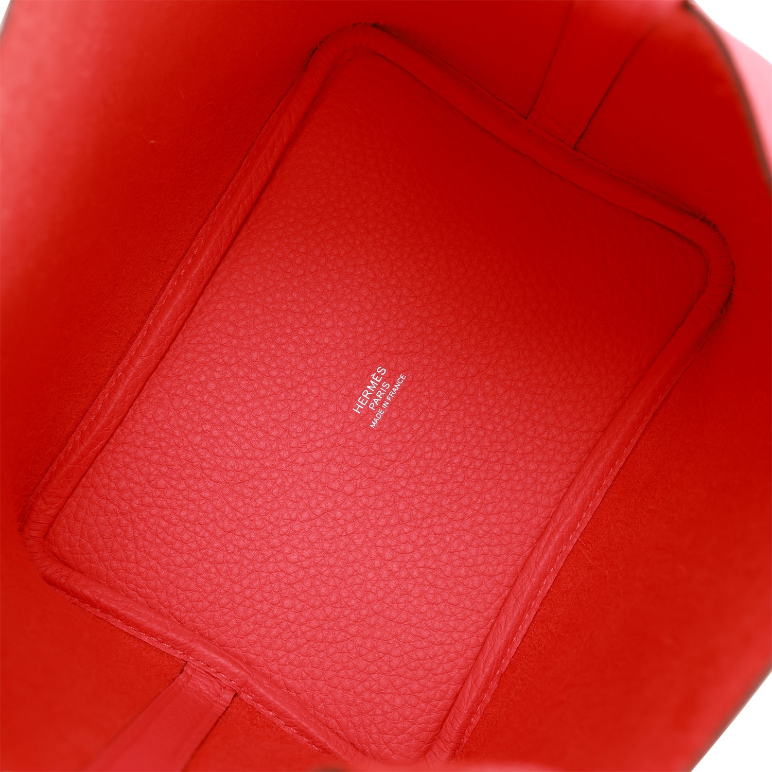 This Picotin Lock is in Rose Texas clemence leather with palladium hardware and has tonal stitching with two top handles.