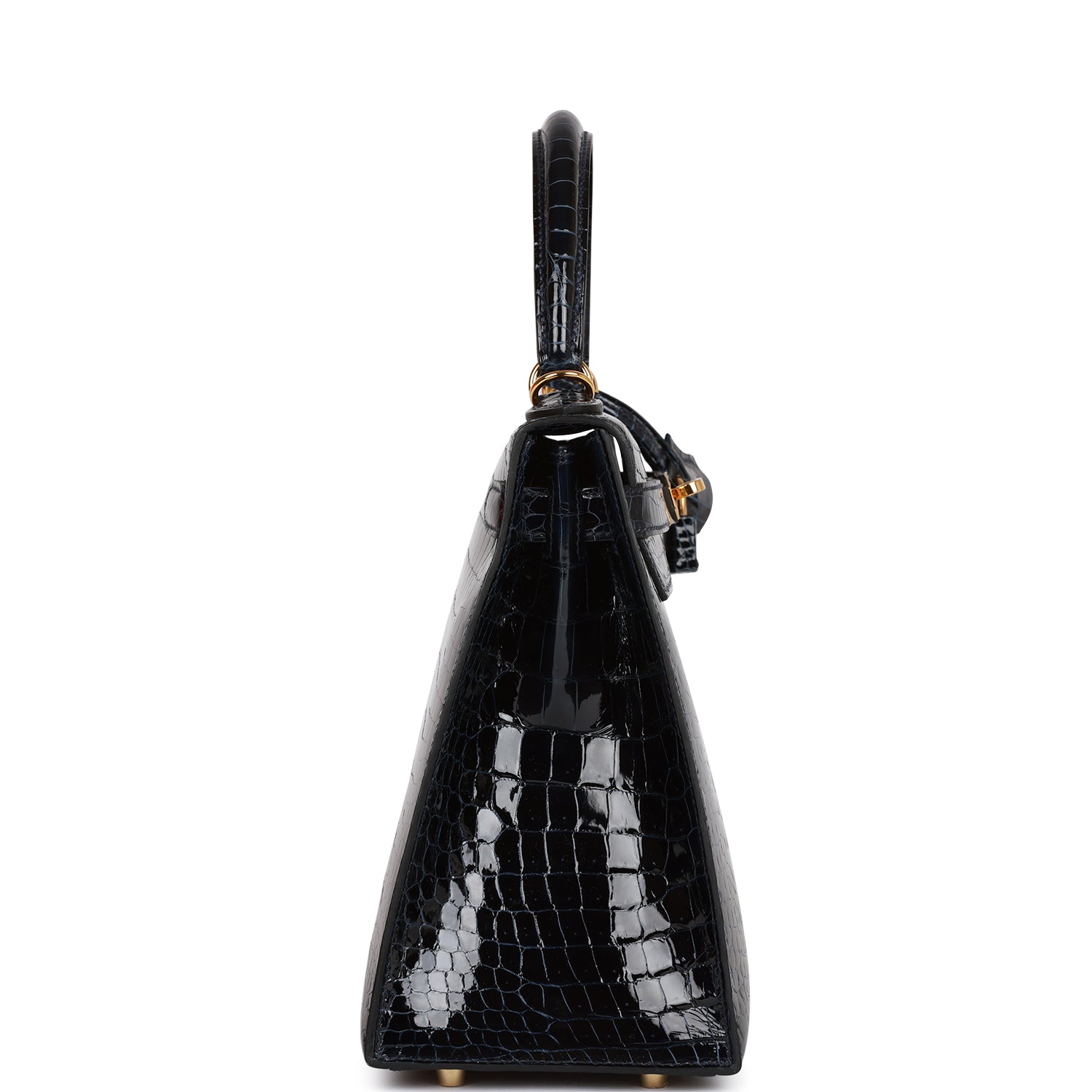 Hermès Kelly Sellier 28 Bleu Baltique Shiny Porosus Crocodile Gold Hardware