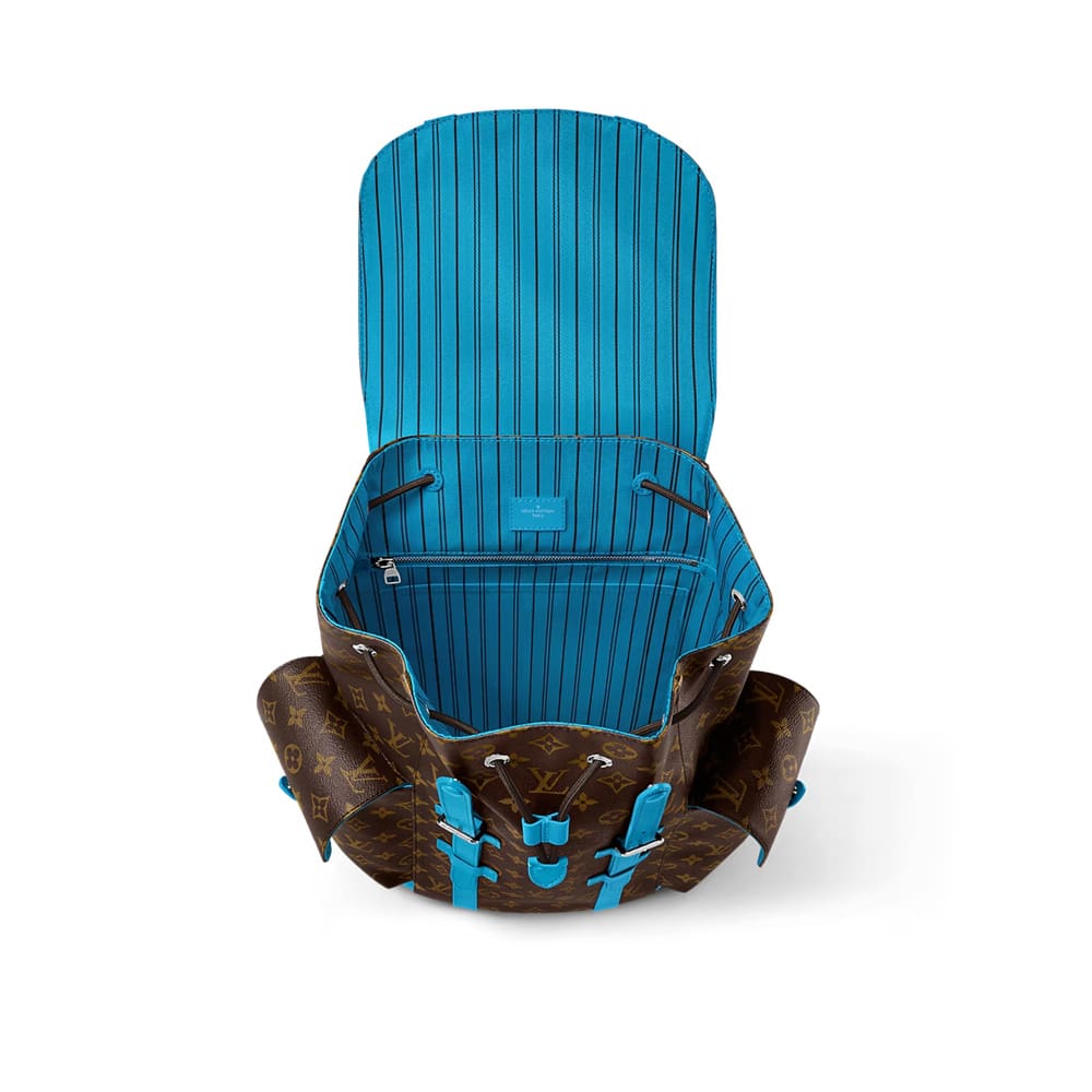Trimmed with leather in an energetic color that pairs perfectly with Monogram Macassar canvas, this Christopher MM backpack is part of the LV Colormania collection. In addition to the colorful exterior details, the backpack is lined in matching-colored textile. The Christopher features two spacious pockets on the side and closes with a drawstring and press stud.