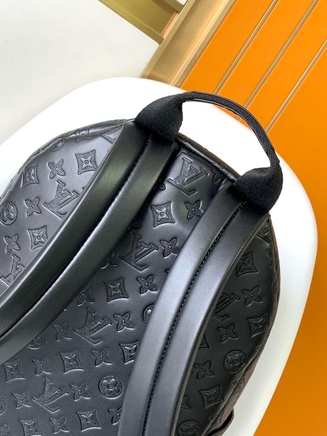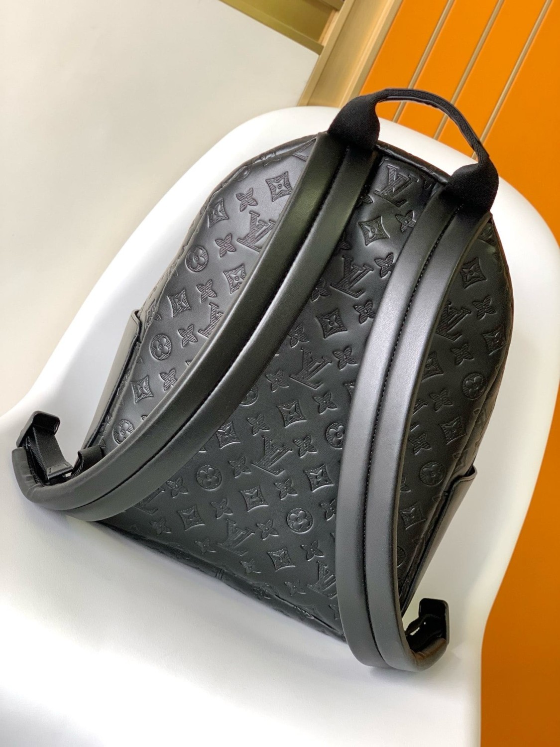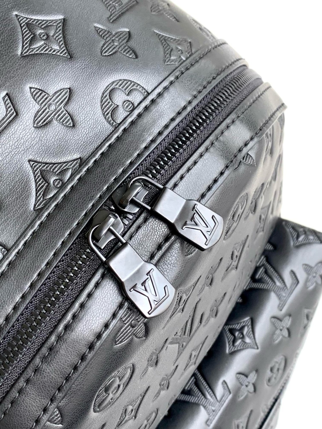 Made from calf leather with an embossed Monogram pattern, the Discovery Backpack combines style, comfort, and functionality. Its supple, body-friendly shape features three outside pockets for easy access to essentials and numerous inside pockets to keep things organized. The black-color hardware completes the understated design.