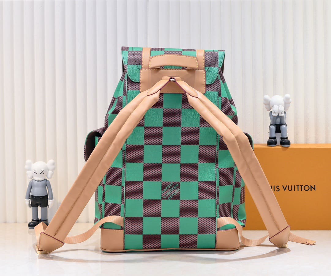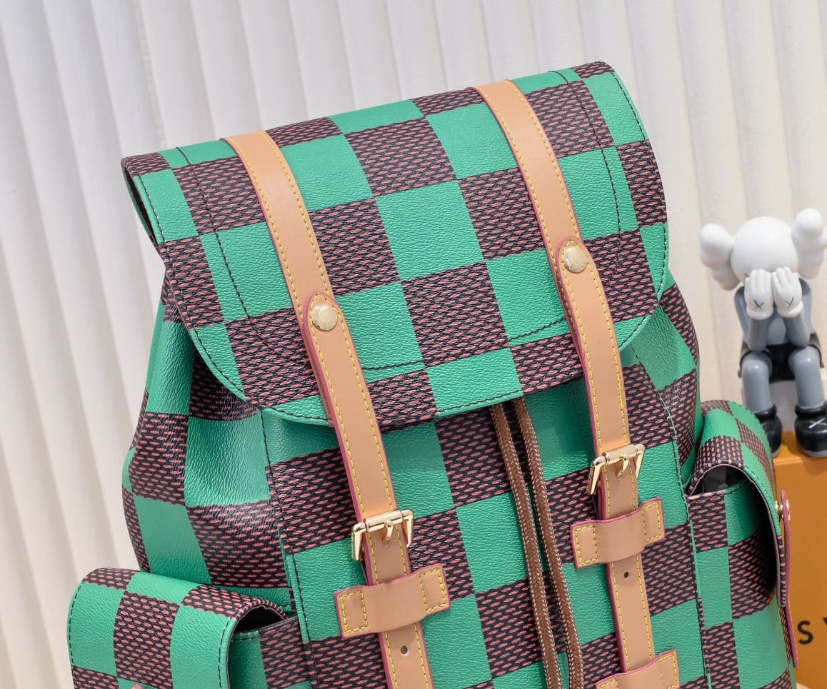 The Christopher MM backpack takes on a fashion-forward aspect in Creative Director Pharrell Williams’ playful Damier Pop canvas. Inspired by the House’s iconic Damier pattern, Williams creates a bold bright version with primary color. Inspired by the classic hiker’s rucksack, the Christopher features two roomy side pockets and closes with a drawstring and press studs.