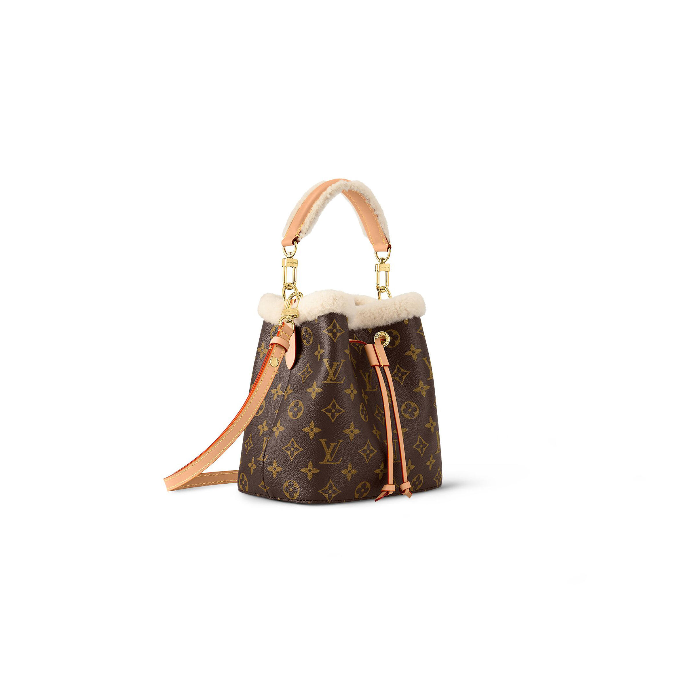 The Cozygram capsule combines iconic Monogram canvas, cream-colored shearling and aged natural leather in an exclusive line of handbags, featuring this covetable N茅oNo茅 BB. One of the Maison��s most iconic models, it looks wintry-fresh with a top handle and border of soft, fluffy fleece. The bag��s long leather strap adjusts for different styling options.