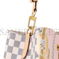 The body-friendly N茅oNo茅 MM bucket bag takes on a summery feel in Damier Azur canvas, livened up with a bold yet feminine nautical print of ropes and chains. The bag��s strap can be adjusted for long- and short-shoulder carry as well as cross-body wear. The inside zipped pocket keeps belongings secure.