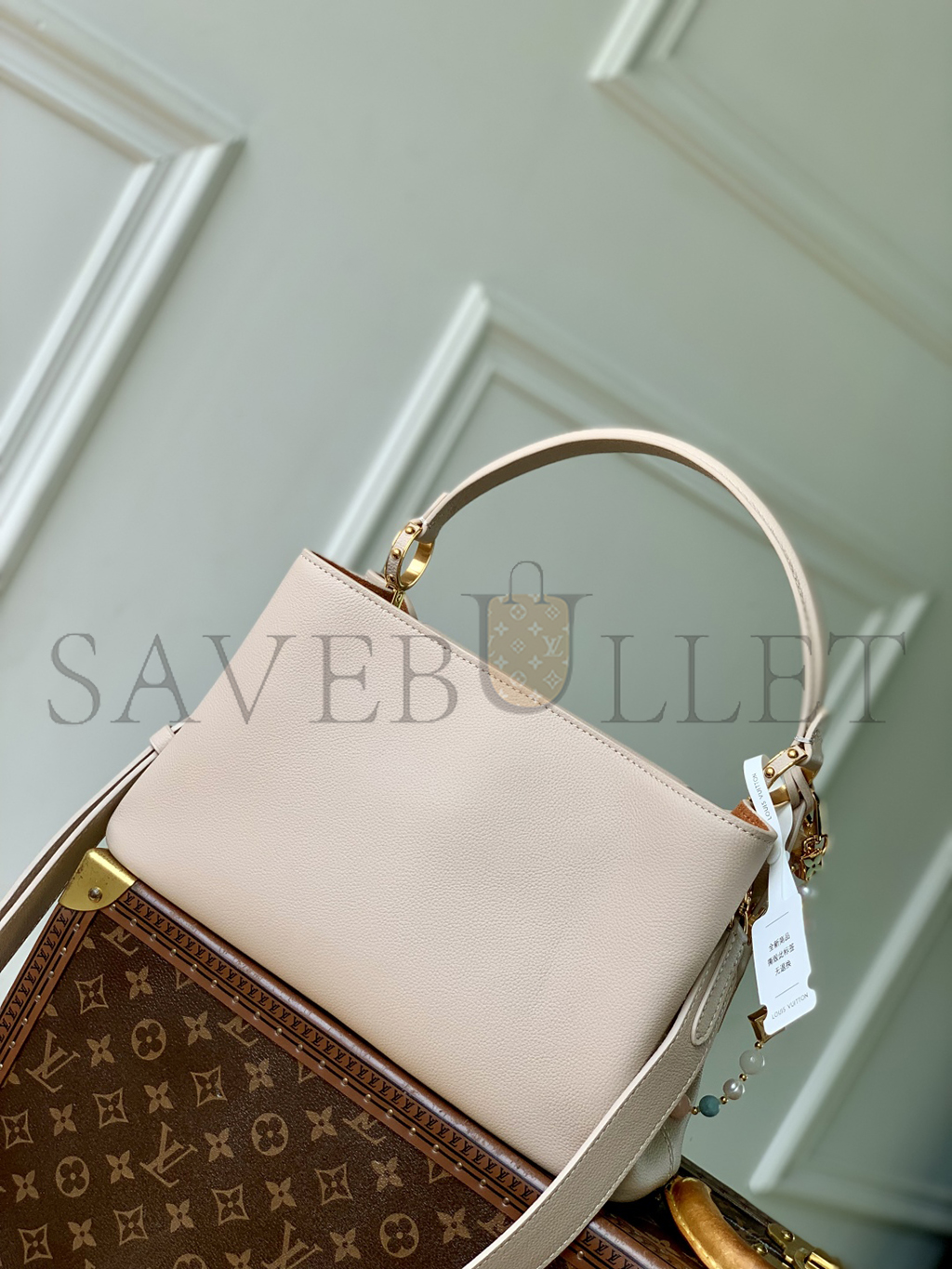 Fits: two smartphones, Capucines wallet, tablet, earphones, keys