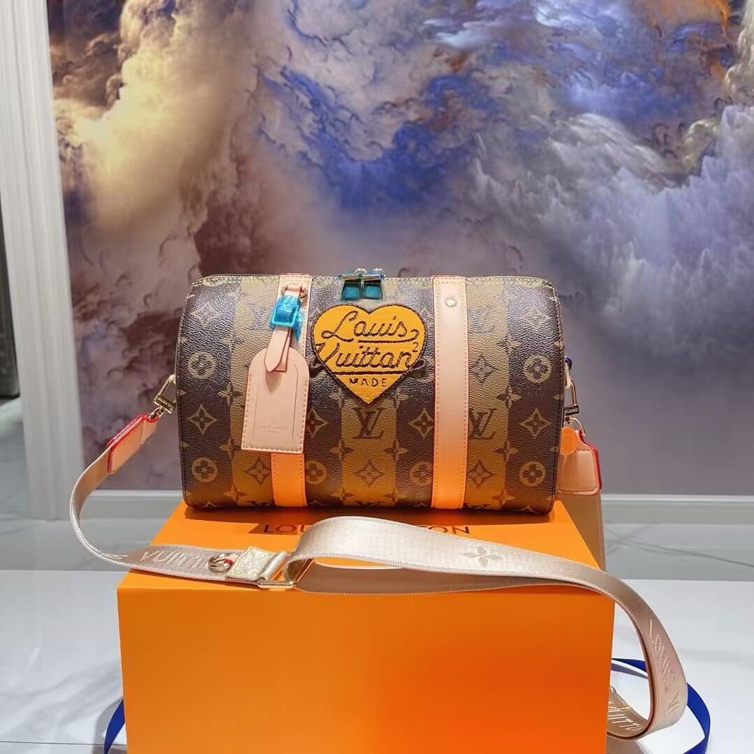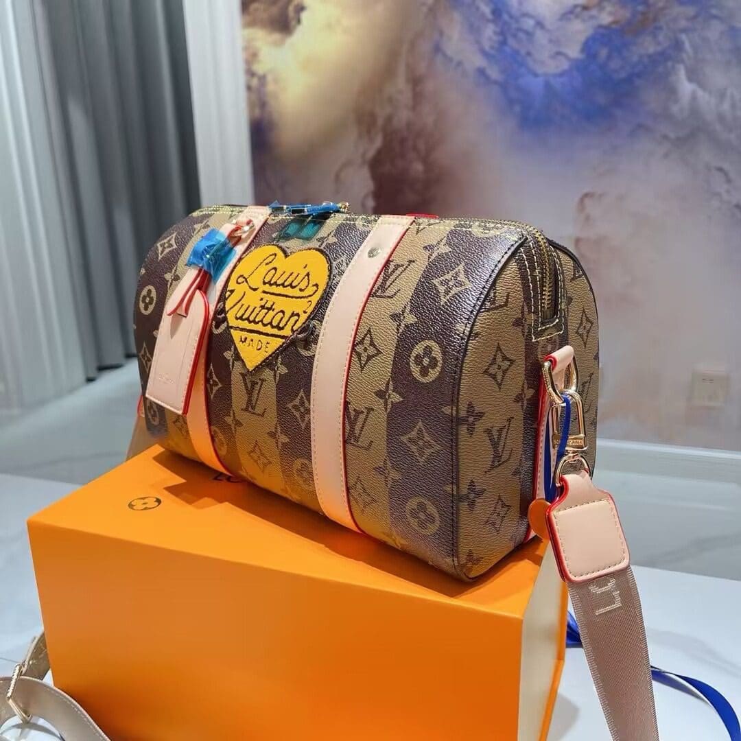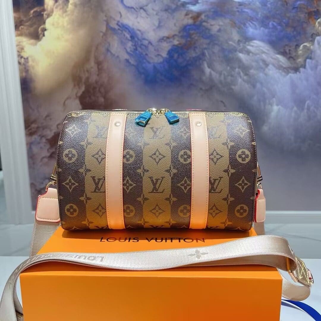 Monogram Stripes Brown coated canvasTextile liningCowhide-leather trimGold-color hardwareDouble zip closureStrap: Removable, adjustableStrap drop: 17.7 inchesStrap drop max: 22.0 inches