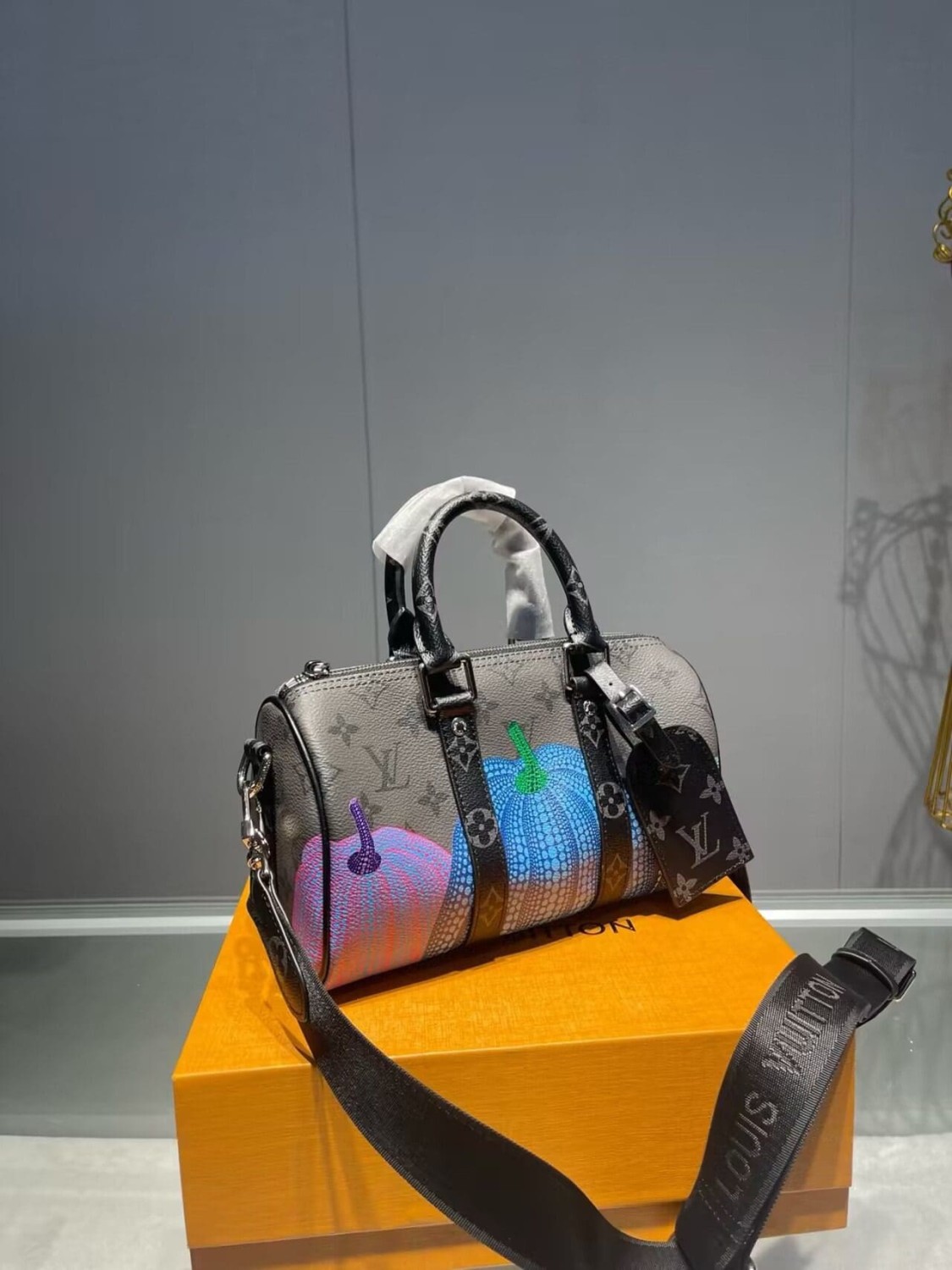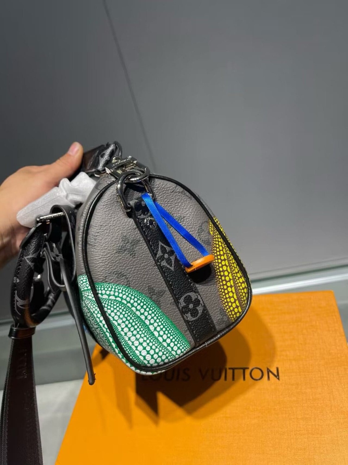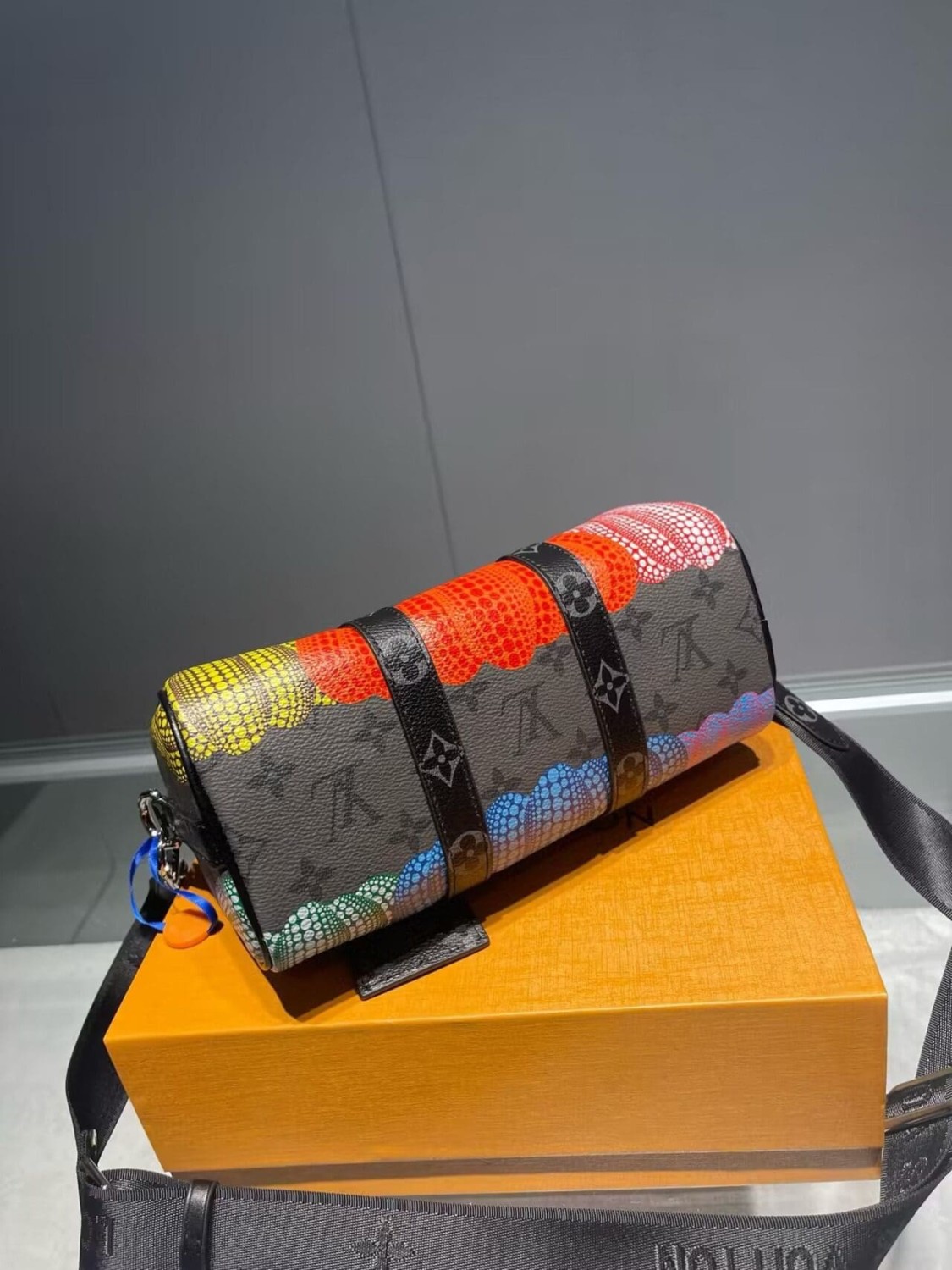Louis Vuitton’s iconic Keepall collection is now updated with a new mini design. Monogram Macassar canvas is dyed in one of Virgil Abloh’s signature bright colors. The reinforced side straps and removable leather nameplate continue the iconic elements. It is paired with double handles and shoulder straps, making it an eye-catching choice for urban life.