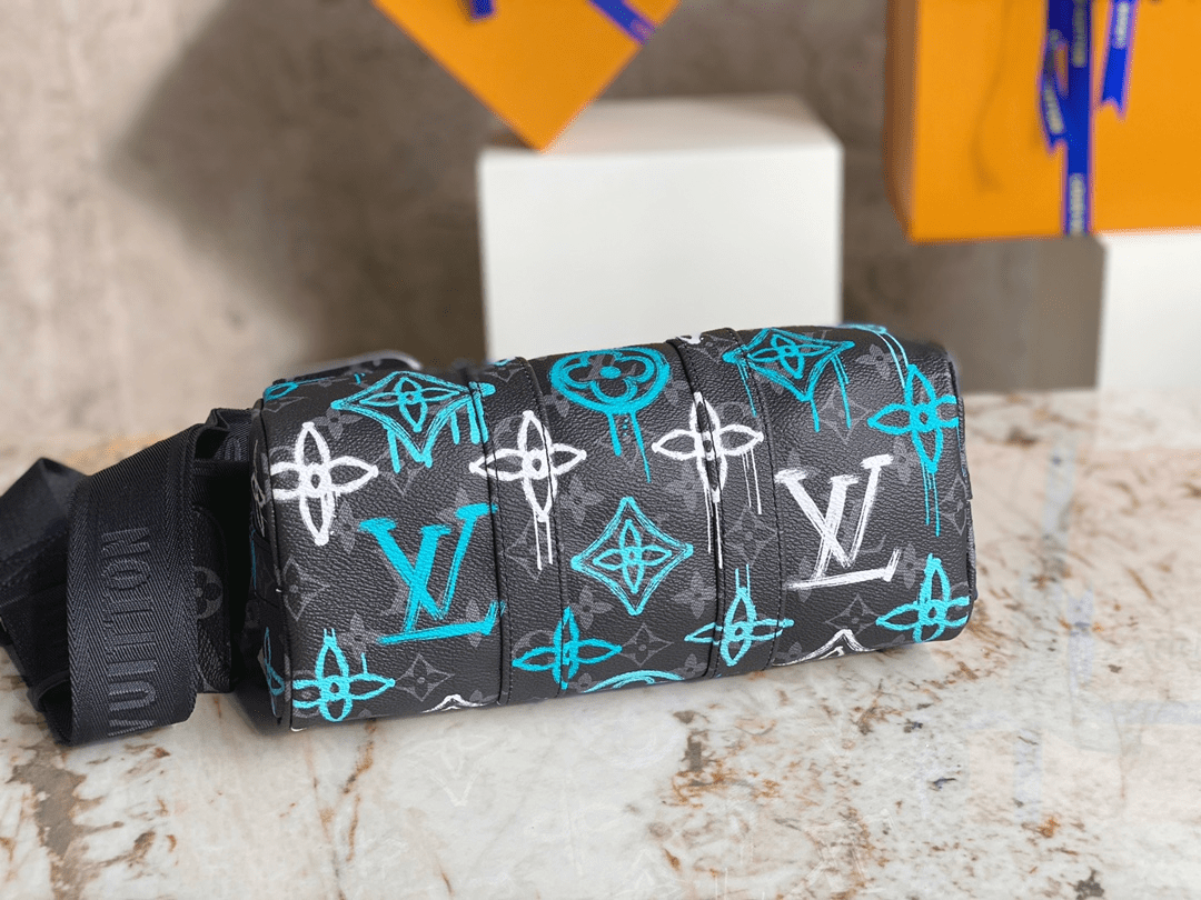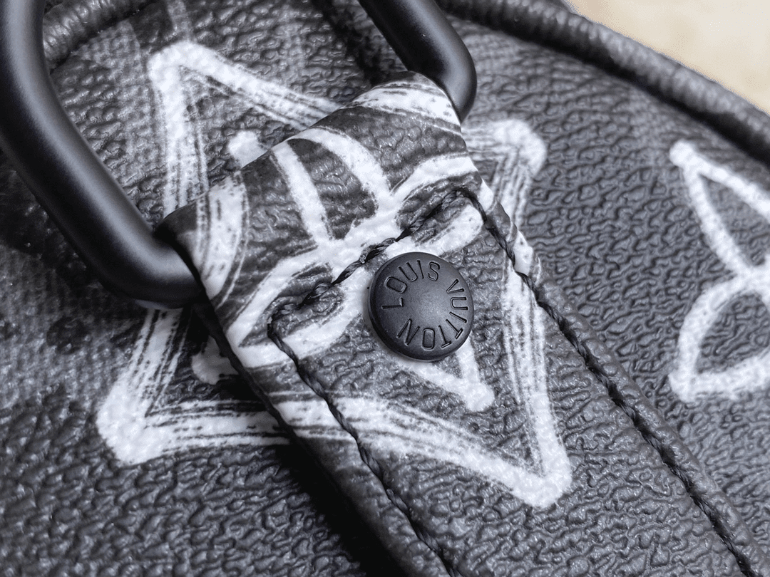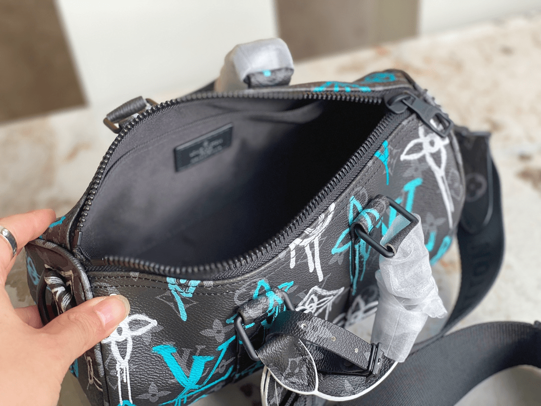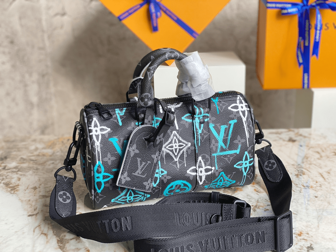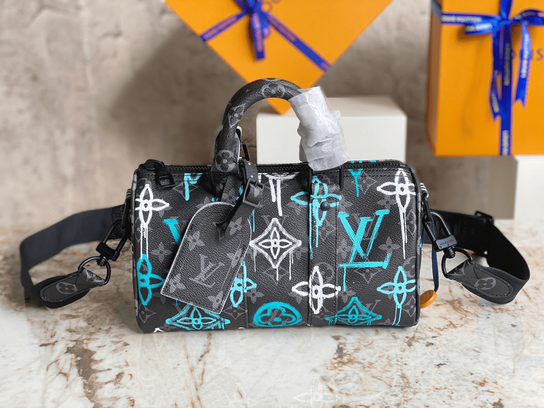 M21399 Printed Pillow Bag Speedy Series This Keepall Bandoulière 25 handbag is made of Monogram Eclipse canvas, with a spray-painted Monogram pattern that exudes a street art atmosphere. The compact design allows for urban mobility, while the side straps and leather nameplate are signature elements of the Keepall travel bag. Dimensions 25 x 15 x 11 cm (length x height x width)