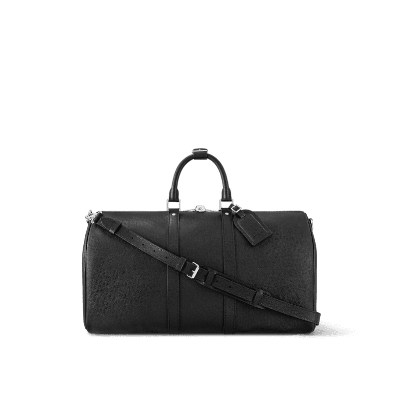 Timelessly elegant in emblematic Taiga leather, Louis Vuitton’s iconic Keepall holdall, the original soft travel bag, is a stylish and practical choice for a weekend away.