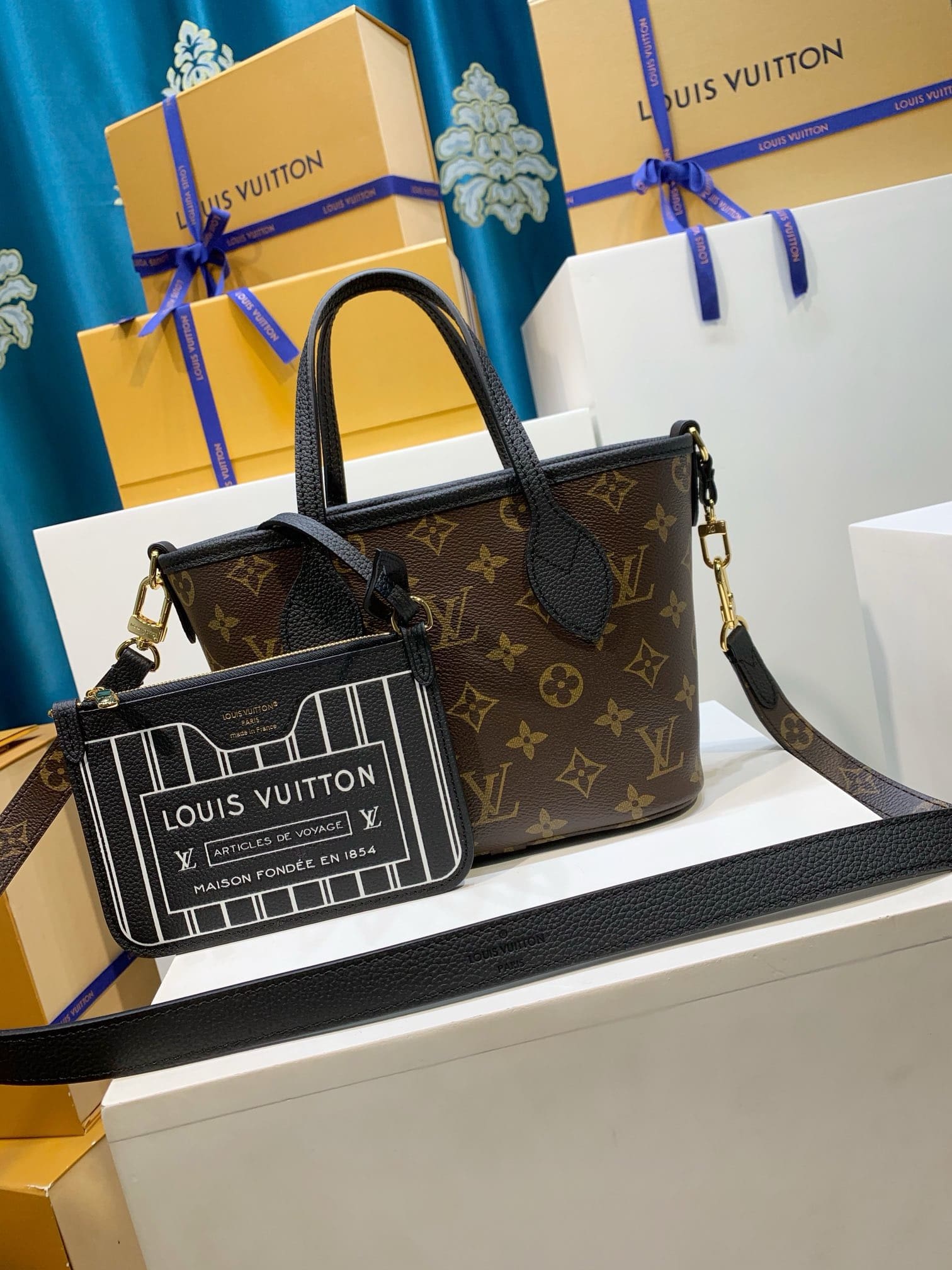 This season, the iconic Neverfull handbag is made reversible. The Bandouli??re Inside Out BB edition is crafted from signature Monogram canvas with grained leather on the reverse. It comes with a removable zipped pouch that can be used on its own, or attached as an exterior pocket. Gleaming gold-toned hardware adds the final touch. It also features a removable strap that allows for crossbody carry.