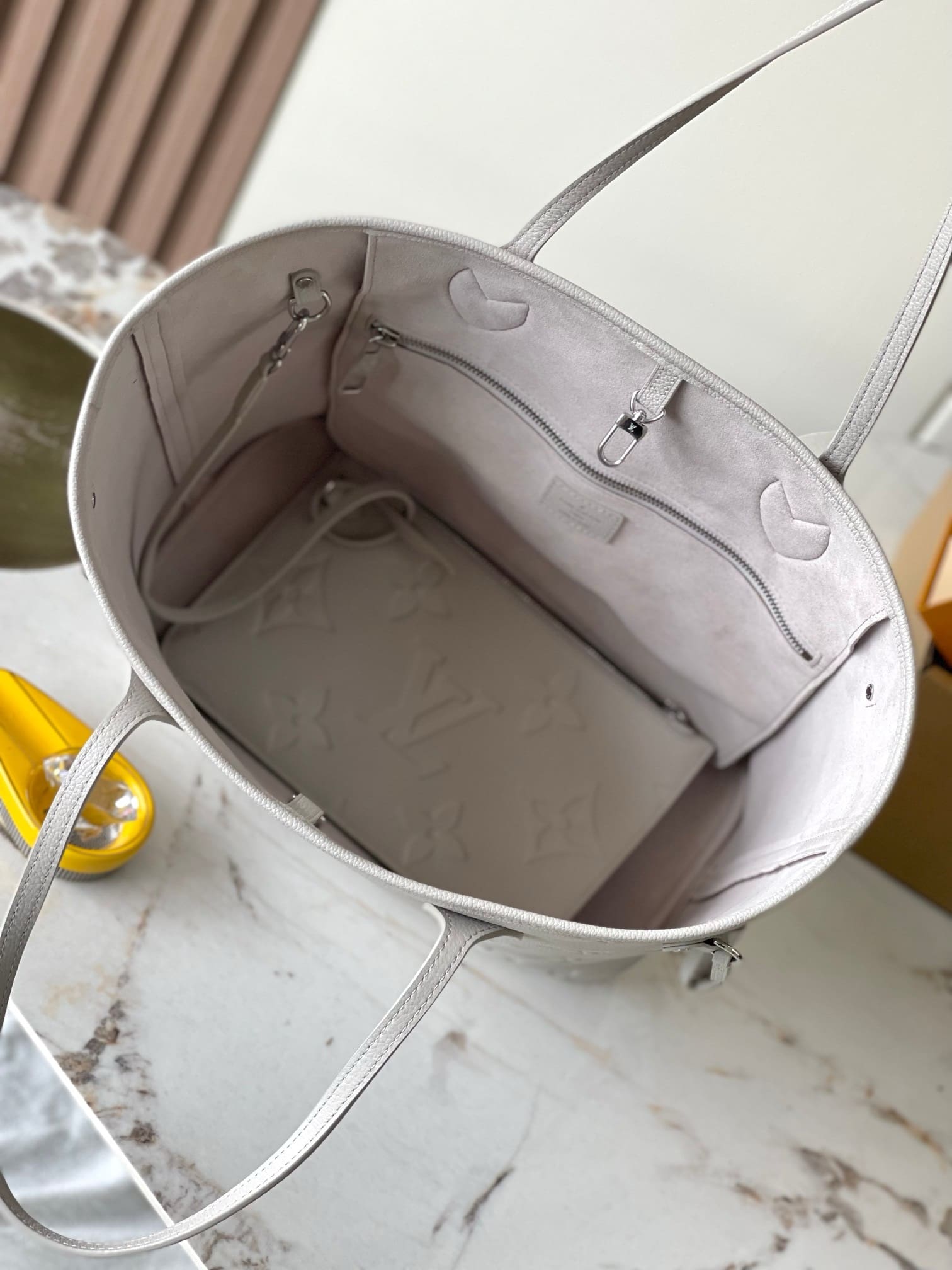 Designed in a sophisticated shade for the season, the Neverfull MM is the perfect work-to-weekend bag. It is made from signature Monogram Empreinte leather accented with silver-toned hardware and is sized to store a laptop and longer wallet. The interior zipped pocket is removable, doubling up as an extra accessory.