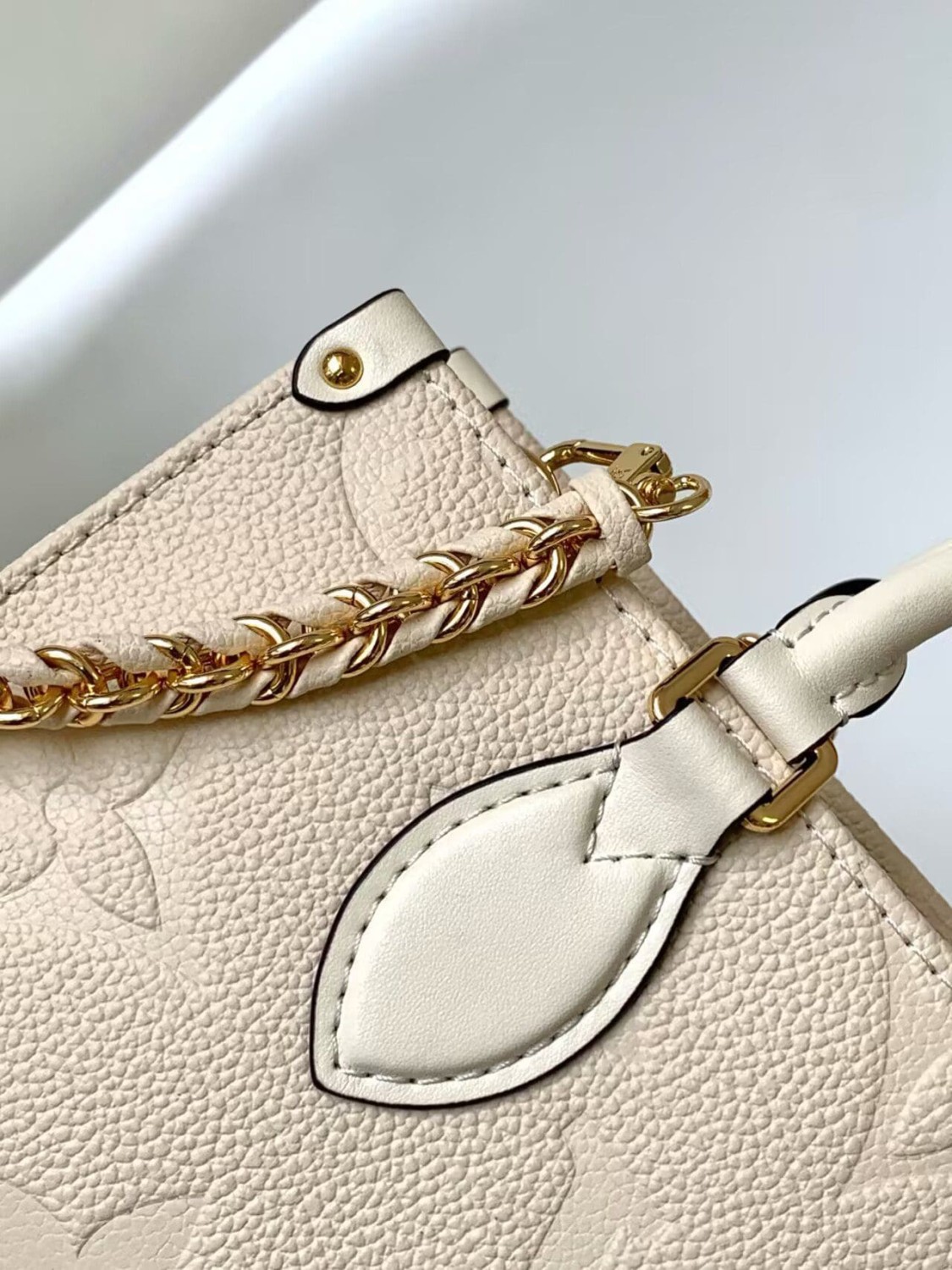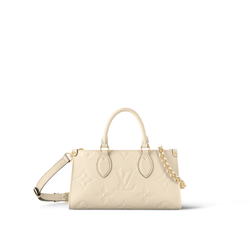 Introducing the OnTheGo East West tote, interpreted in a beautifully proportioned east-west silhouette. Made from Monogram Empreinte leather embossed with a tonal Giant Monogram motif, this compact model boasts a well-organized interior for daily essentials. The bag lends itself to a variety of carry styles, thanks to its two articulated top handles and a removable chain-and-leather strap.