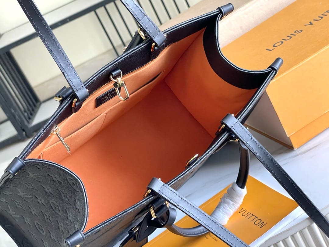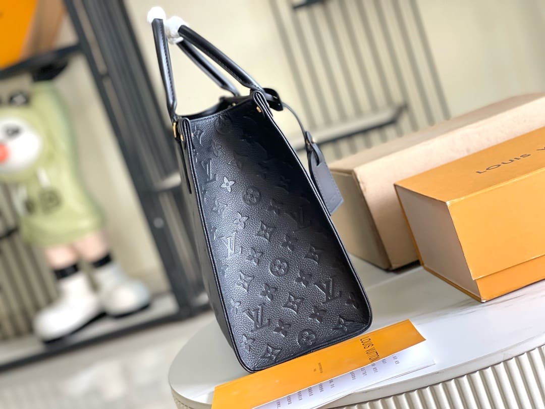For Spring 2021, Louis Vuitton launches the Onthego MM tote bag in grained Monogram Empreinte, a soft leather that is embossed with a large and modern Monogram pattern. Thanks to the square shape, it boasts a generous capacity and can easily fit a laptop. Its articulated top handles and shoulder straps give carrying options.