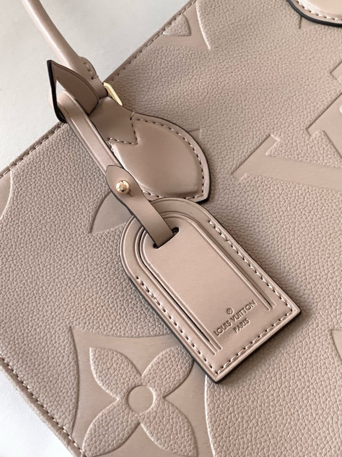 For Spring 2021, Louis Vuitton launches the Onthego MM tote bag in grained Monogram Empreinte, a soft leather that is embossed with a large and modern Monogram pattern. Thanks to the square shape, it boasts a generous capacity and can easily fit a laptop. Its articulated top handles and shoulder straps give carrying options.