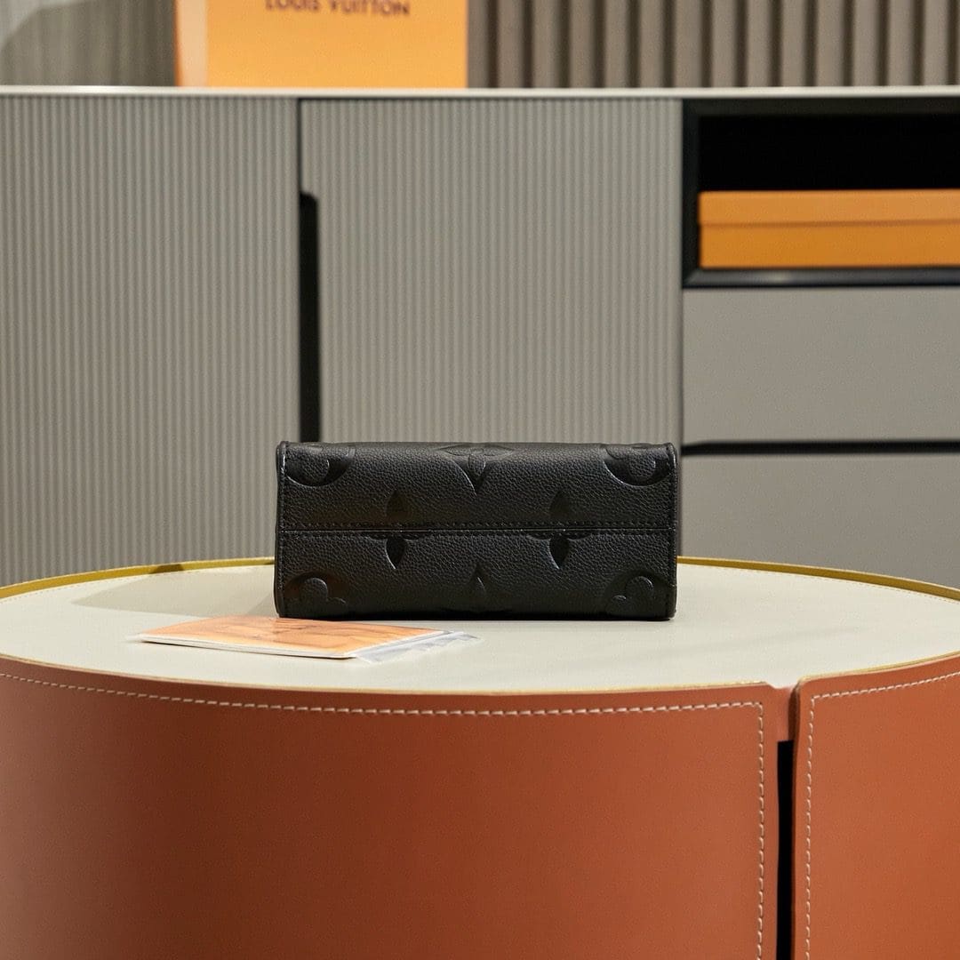 The OnTheGo BB is an on-trend micro-bag fashioned from Monogram Empreinte leather, with Monogram embossing. This tiny tote boasts all details of the full-size model – including the distinctive handle mounts and riveted leather tabs on the corners – and can fit a smartphone and compact wallet. A removable and adjustable strap enables shoulder carry.