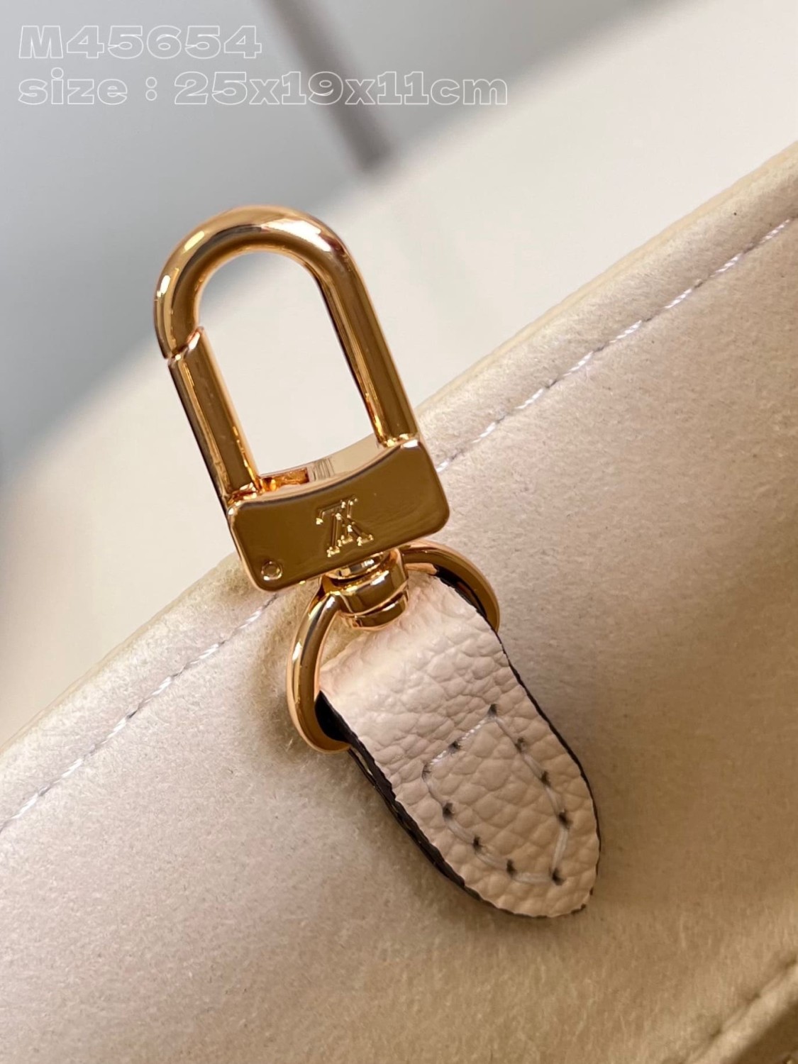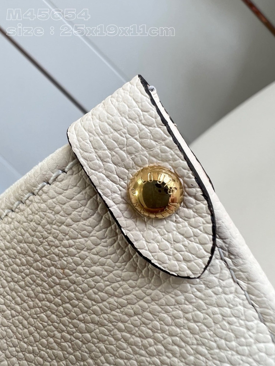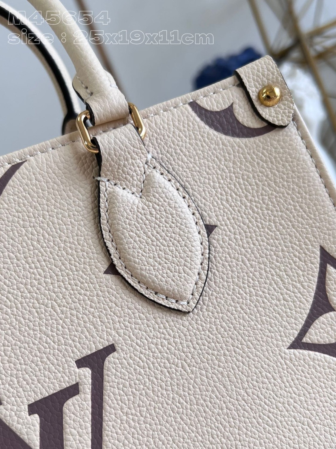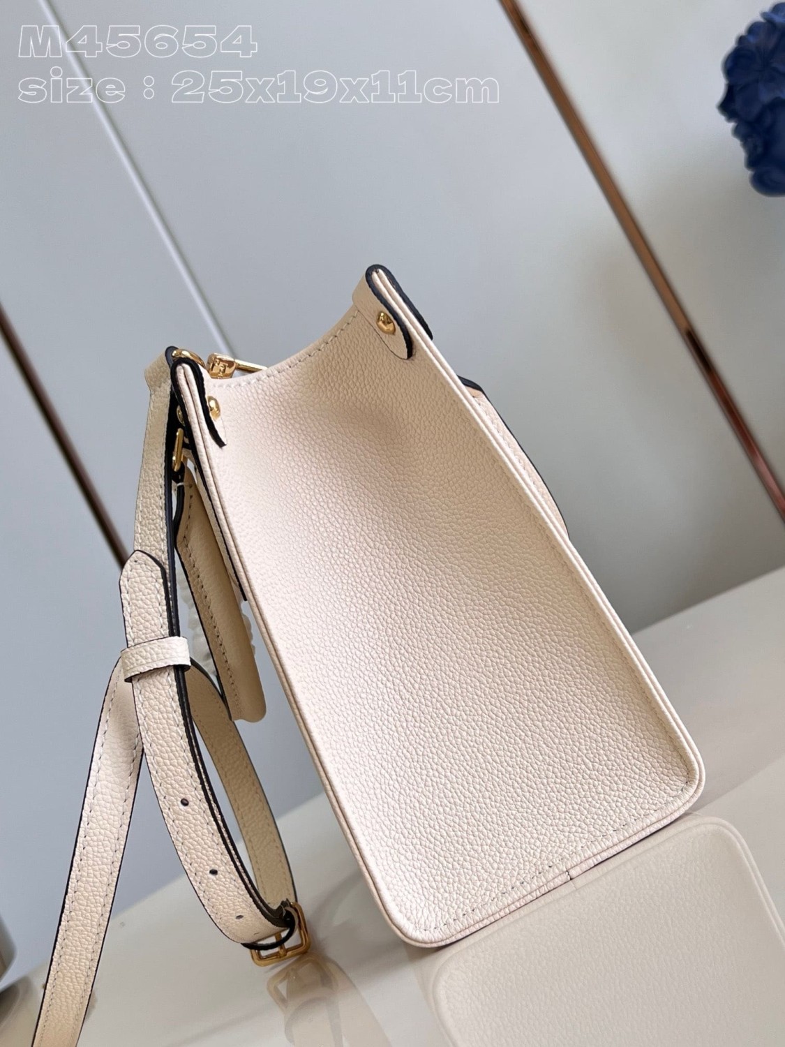 Characteristics: Inspired by Louis Vuitton’s famous Sac Plat from 1968, t he OnTheGo PM is a small-sized tote bag with two sets of handles, long and short, for hand and shoulder carry. Fashioned from supple grained cowhide leather, it features a Monogram pattern, printed on and embossed into the leather. This new smaller version Onthego fits essentials such as an iPad Mini.