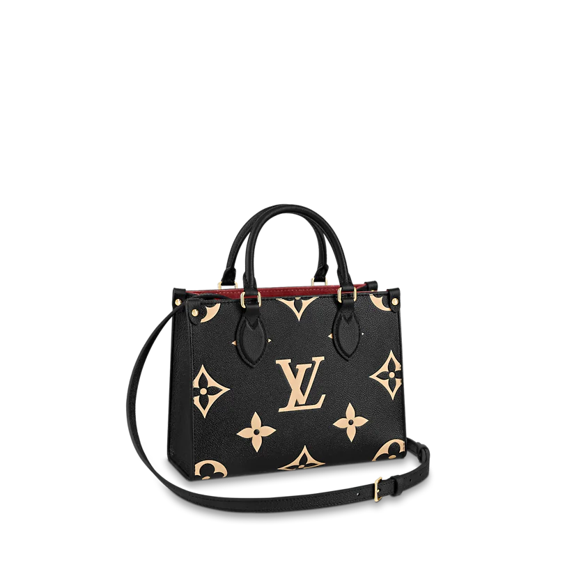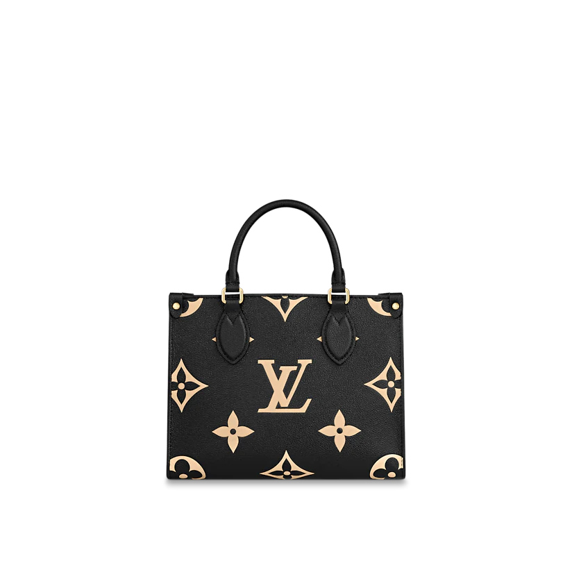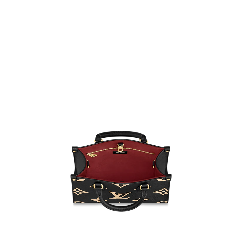 Inspired by Louis Vuitton’s famous Sac Plat from 1968, the OnTheGo PM tote is fashioned in Monogram Empreinte leather, embossed with a Medium Bicolor Monogram pattern. This smaller version of the original OnTheGo fits essentials such as an iPad Mini. Articulated top handles and an adjustable removable strap offer a variety of carry options.