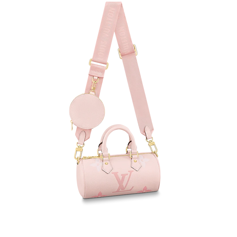 This adorable version of the historic Papillon shape, the Papillon BB carryall bag, is made from pastel Monogram Empreinte leather with a gradient Monogram print. Its iconic lines get a sporty update thanks to its detachable Louis Vuitton jacquard strap. The removable round coin purse brings a playful touch.