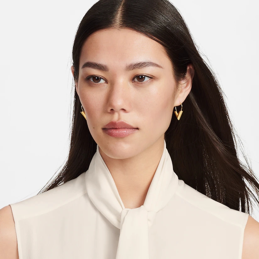 Sleek and elegant, the Essential V small hoop earrings are the perfect example of Louis Vuitton style. The Vs are gracefully signed with the LV hallmark.