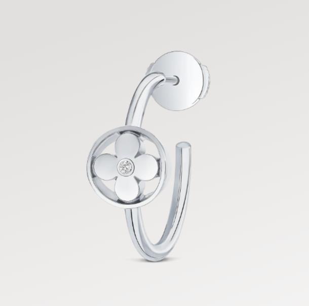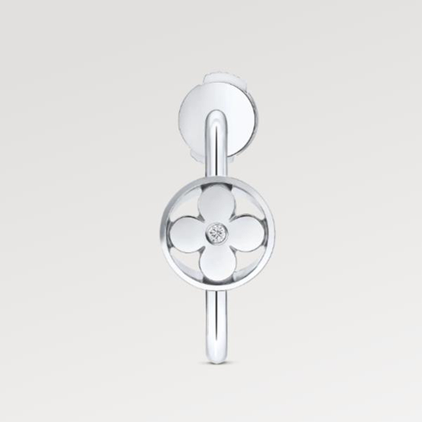 This Idylle Blossom small hoop earring brings the understated elegance of 18-karat white gold to the Monogram Flower, created in 1896 by Georges-Louis Vuitton. Within its perfect tiny circle sits the delicate blossom, a glittering diamond at its center. Perfect styled alone or matched with other pieces from the collection for a personalized look.