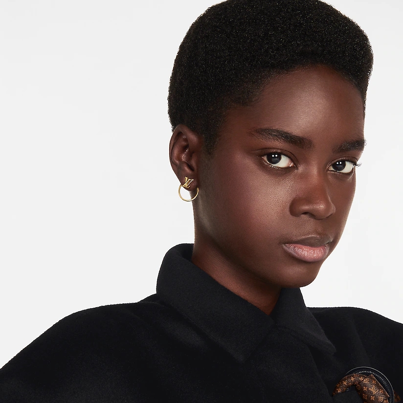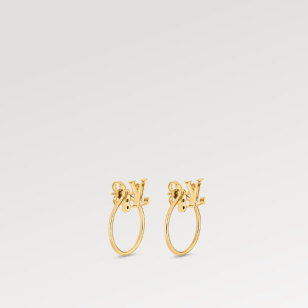 The elegant look and unconventional fastening system of the LV Eclipse earrings highlight the House’s expert craftsmanship. In this design, the LV Initials sit on the earlobe, while a finely wrought ring appears from behind the ear. These earrings are part of the LV Eclipse Capsule Collection, in which the icon takes different positions within a circle.