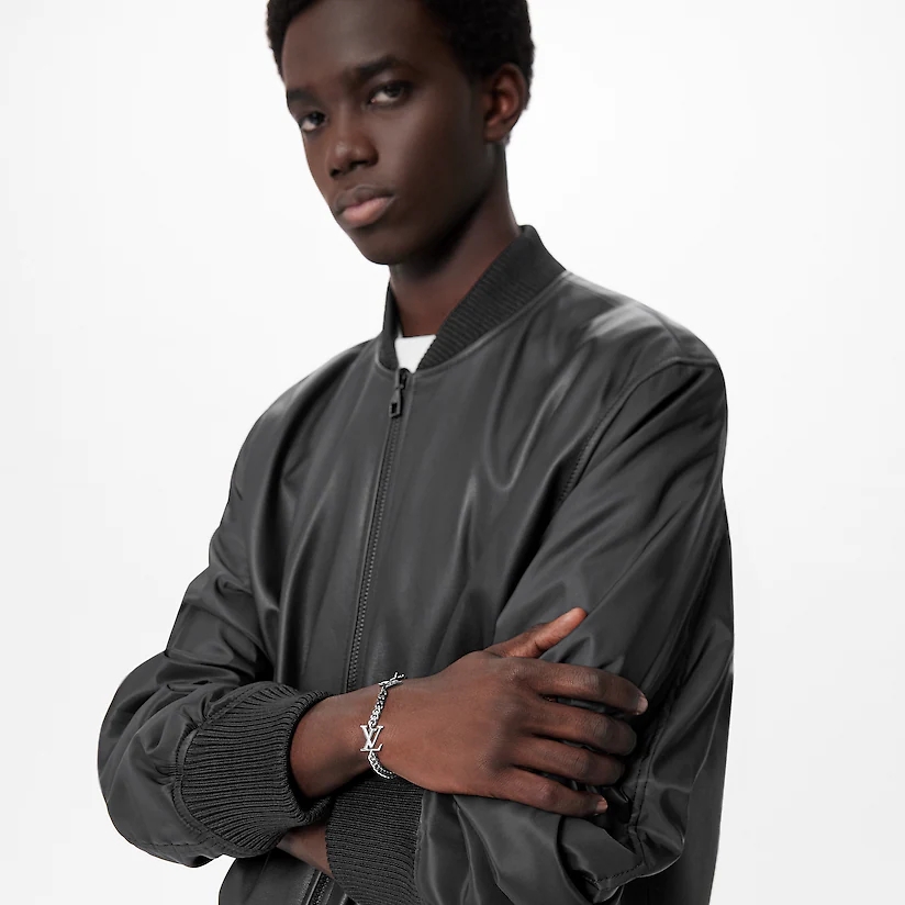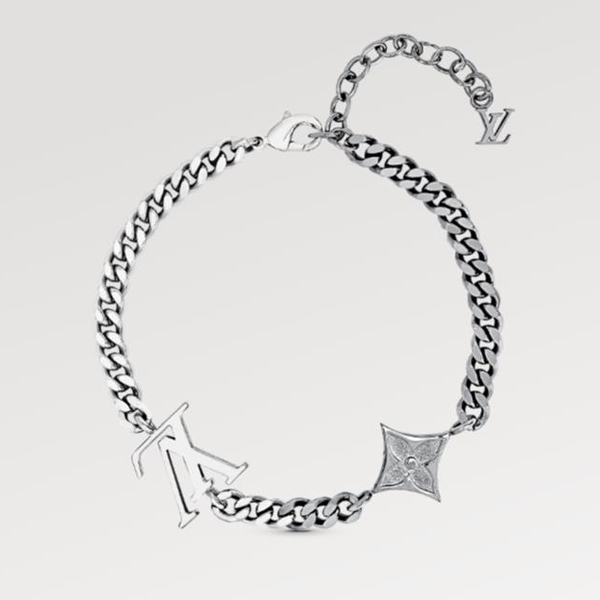 The LV Instinct bracelet is part of a new line in the permanent Men’s Fashion Jewelry collection for Spring-Summer 2022. The two-tone chain link features a pair of oversized LV Initials and a Monogram Flower charm. This piece is adjustable in size and fastens easily with a clasp.