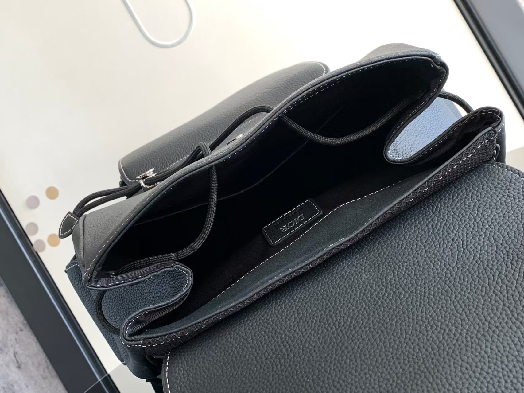 このサドルバックパックは、おしゃれなオリジナルデザインで、サドルスタイルを際立たせています。ブラックのグランレザー(牛革)のディテールが特徴で、フロントには「DIOR」ロゴがアクセントとして飾られています。広々とした設計の内部には様々な日用品を収納できるコンパートメントを備え、フロントのサドルフラップポケットと両側面のフラップポケットで、スマートフォンや鍵などを便利に収納可能。実用的で多様なスタイルに合わせやす、あらゆる装いの印象を引き立てます。