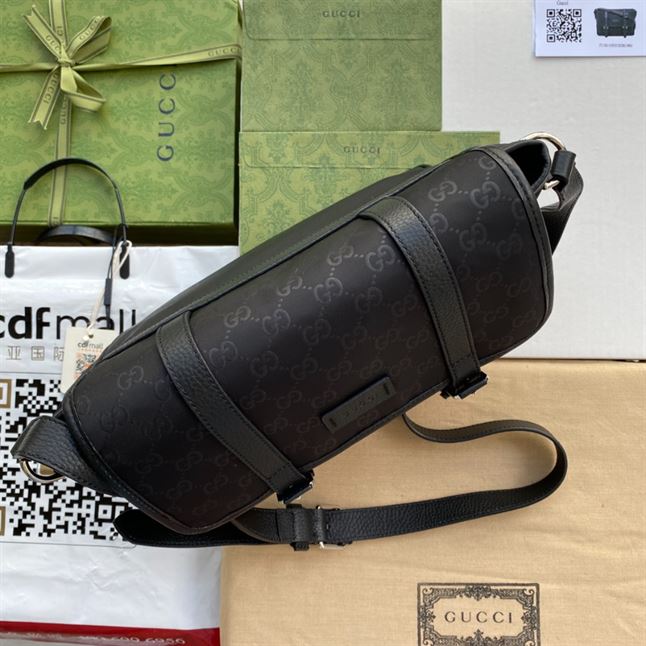 - The Gucci GG Guccissima Black Nylon Messenger Bag is a sleek and versatile accessory that exemplifies Gucci’s blend of modernity and classic elegance. Its spacious interior and well-designed compartments provide ample room for daily essentials. While the adjustable shoulder strap ensures comfortable, customized wear.