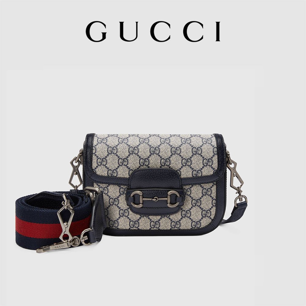 素材の歴史的なルーツを映し出したGGスプリーム キャンバスが、ブルーとベージュというタイムレスなカラーミックスでGucci Love Parade コレクションに登場。したこのキャンバス素材は、何十年もの時を経てもなお各コレクションを彩り、いまやグッチを代表する素材となっています。ここでは、クラシカルなカラーパレットが、〔グッチ ホースビット 1955〕ミニバッグにアクセントを効かせています。
