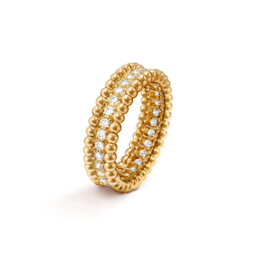 NEW IN Van Cleef & Arpels Perlée diamonds ring with single row diamond inlay design