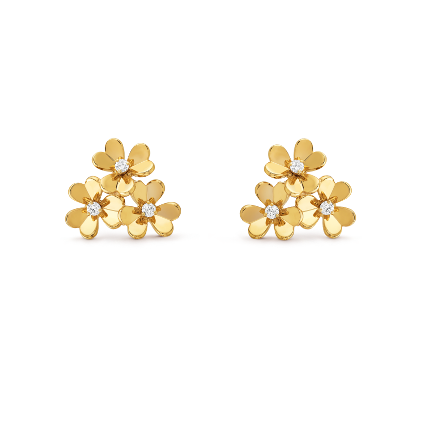 NEW IN Van Cleef & Arpels Frivole earrings, 3 flowers, mini style
