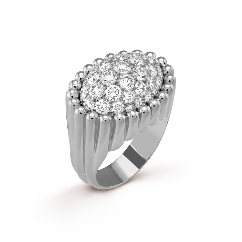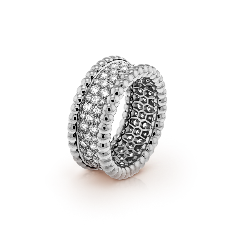 NEW IN Van Cleef & Arpels Perlée diamonds ring with 5-row diamond inlay design