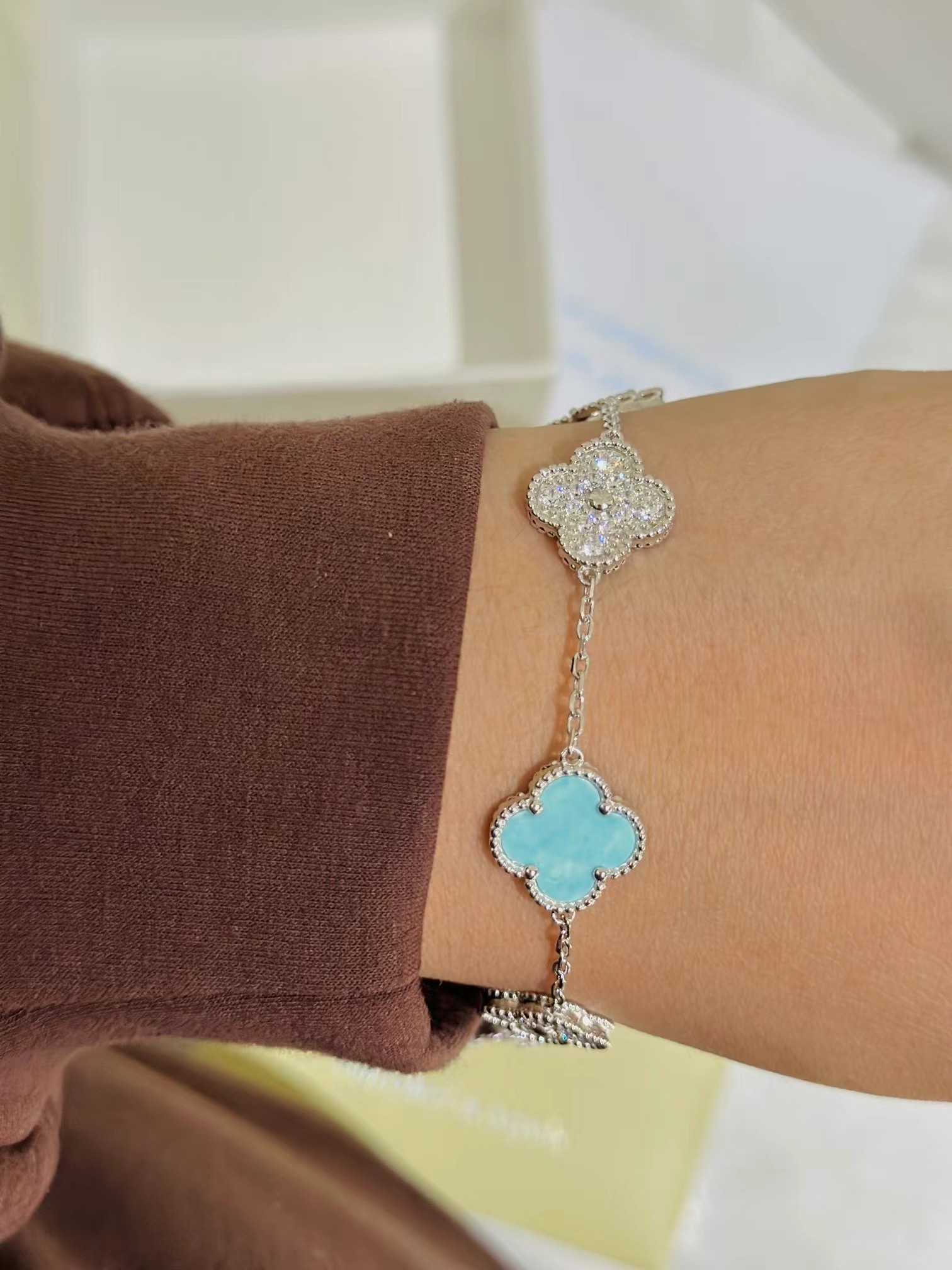 Van Cleef & Arpels Four-leaf clover mint blue bracelet