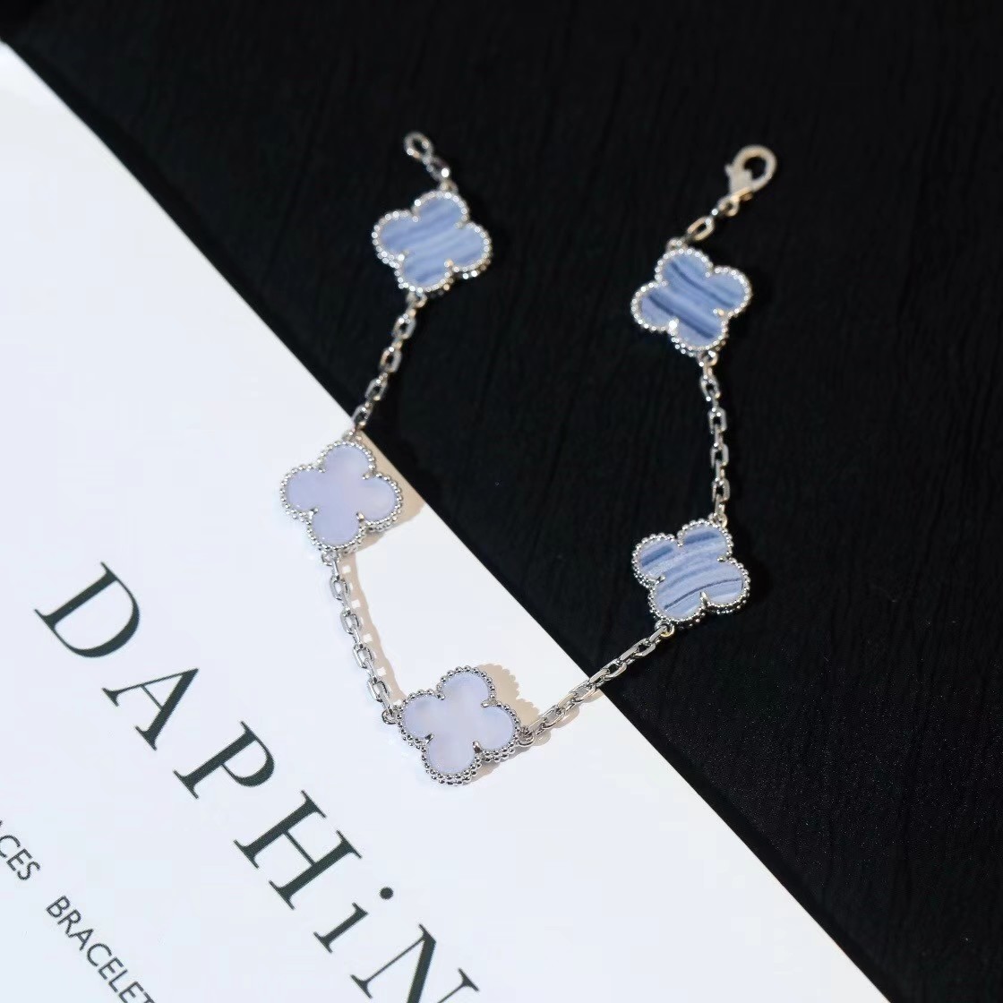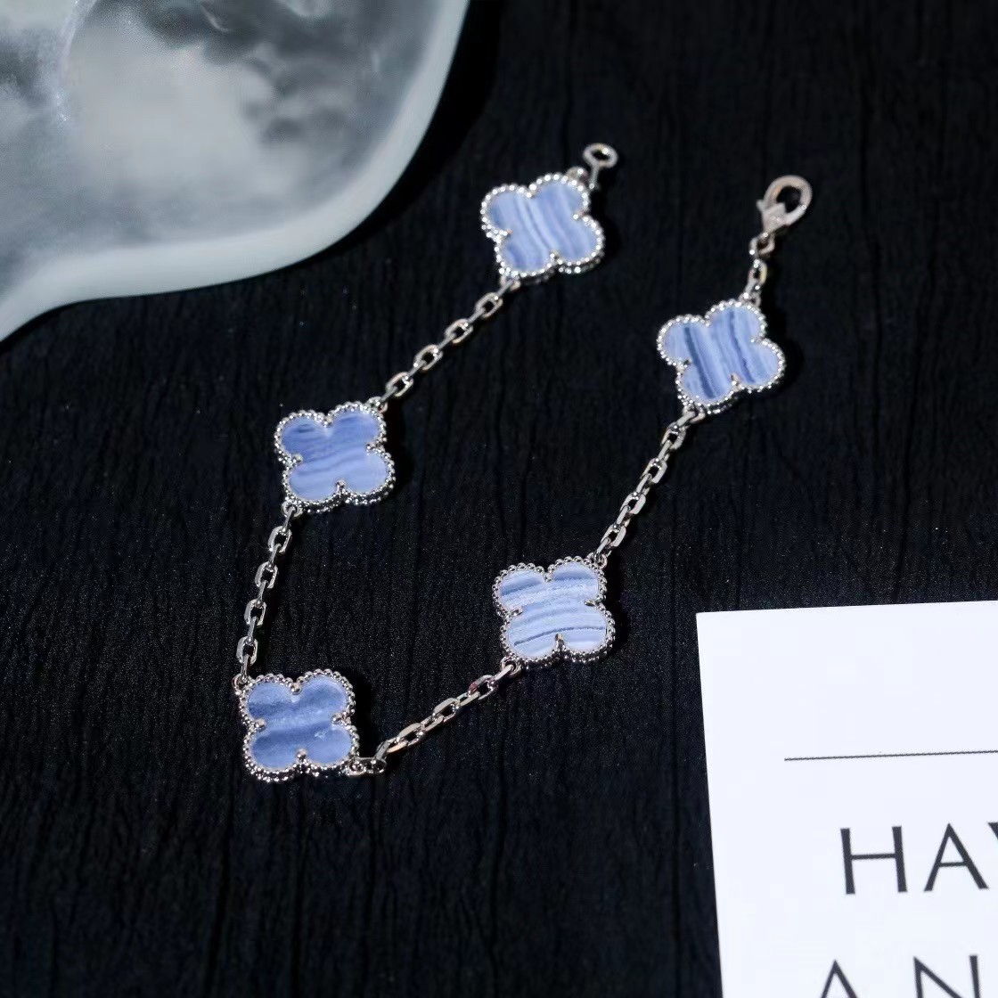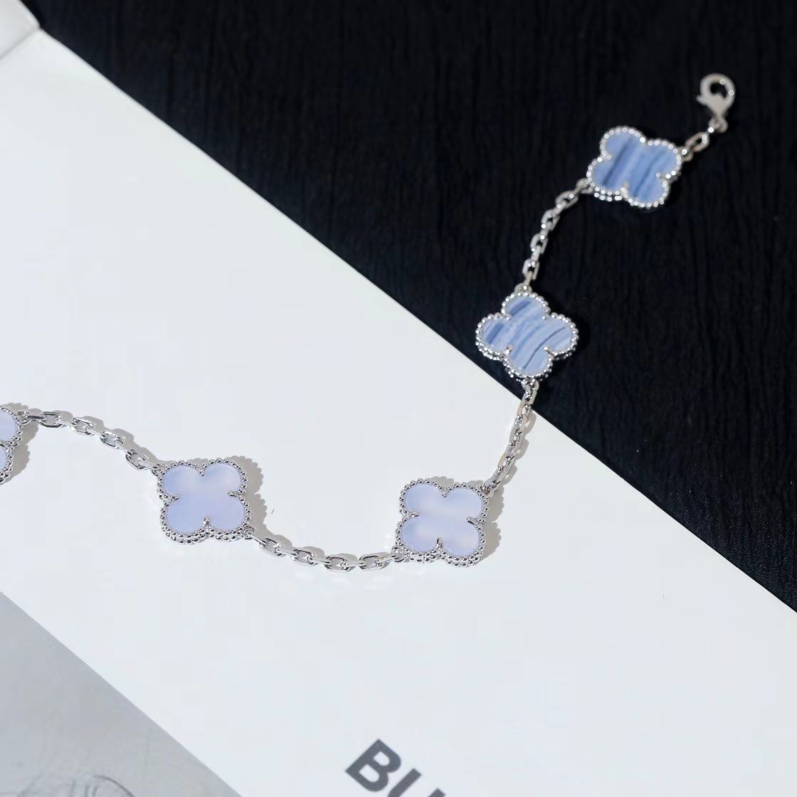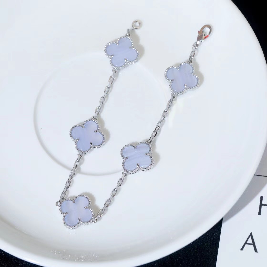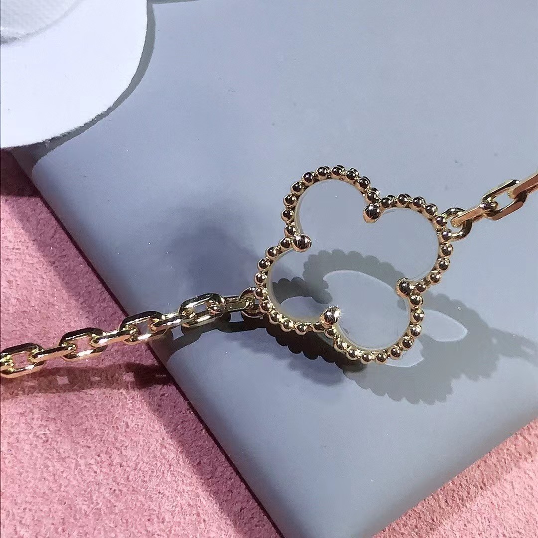 Van Cleef & Arpels Four-leaf clover mint blue chalcedony bracelet