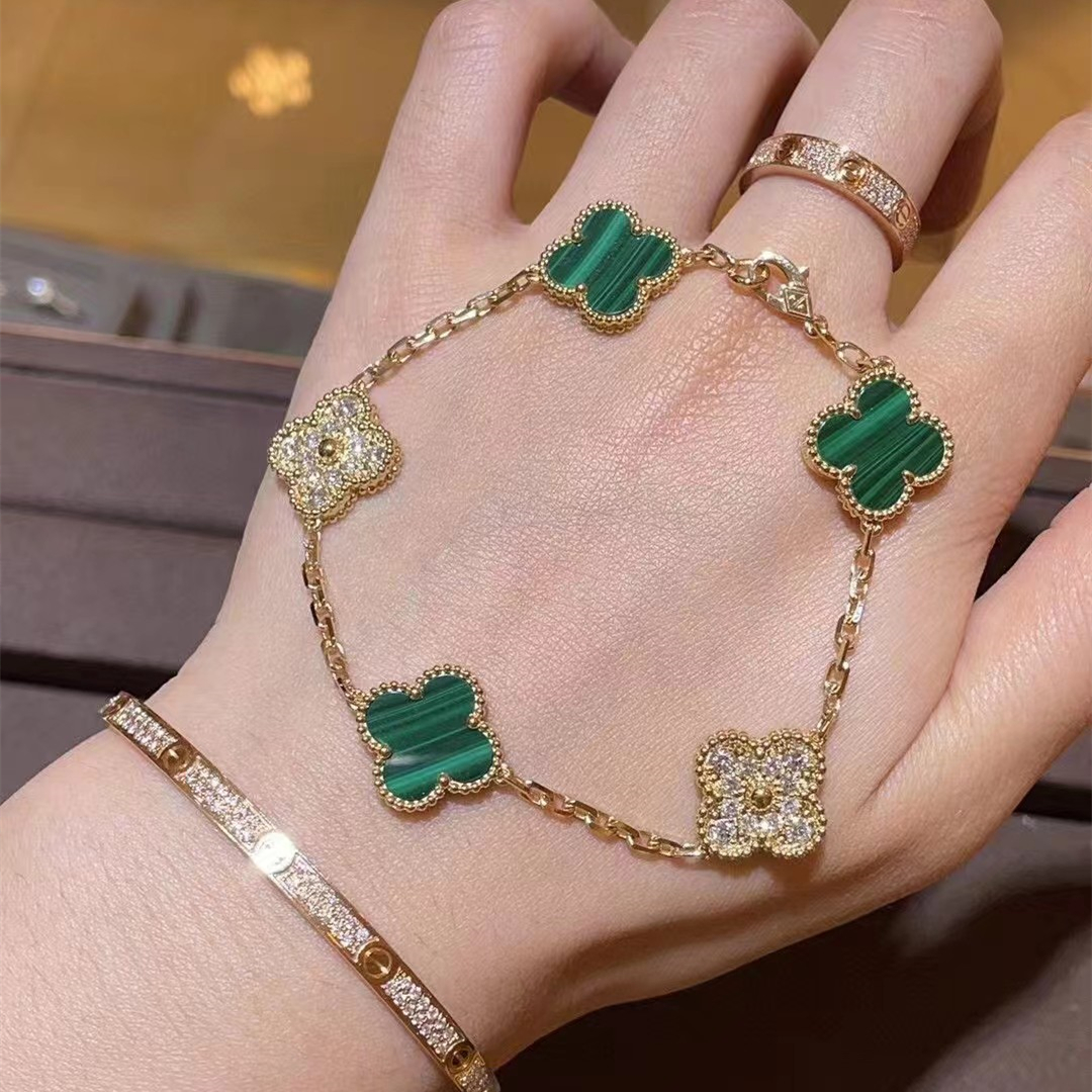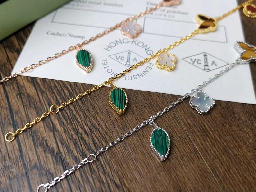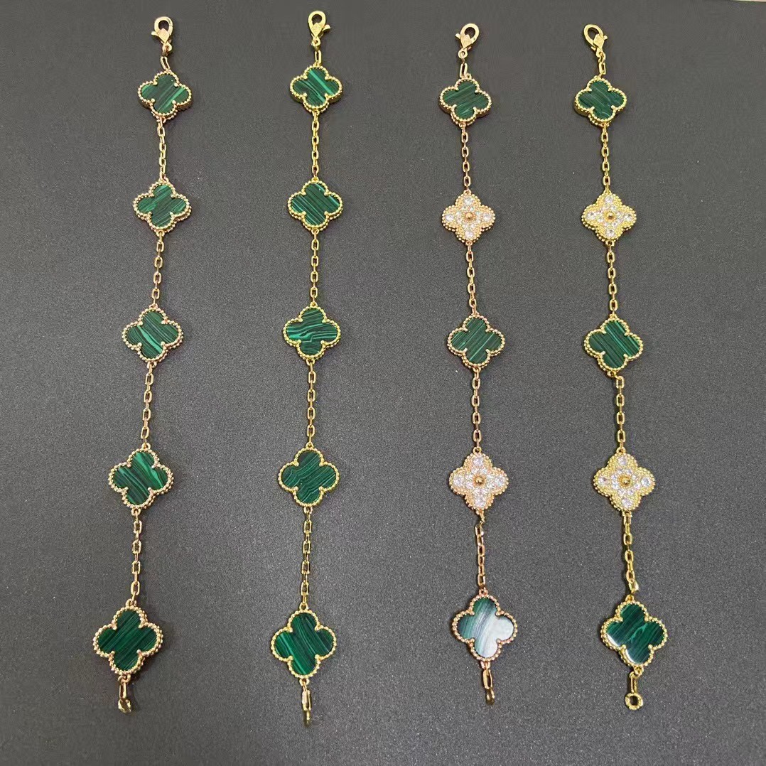 Van Cleef & Arpels Four-leaf clover malachite bracelet necklace